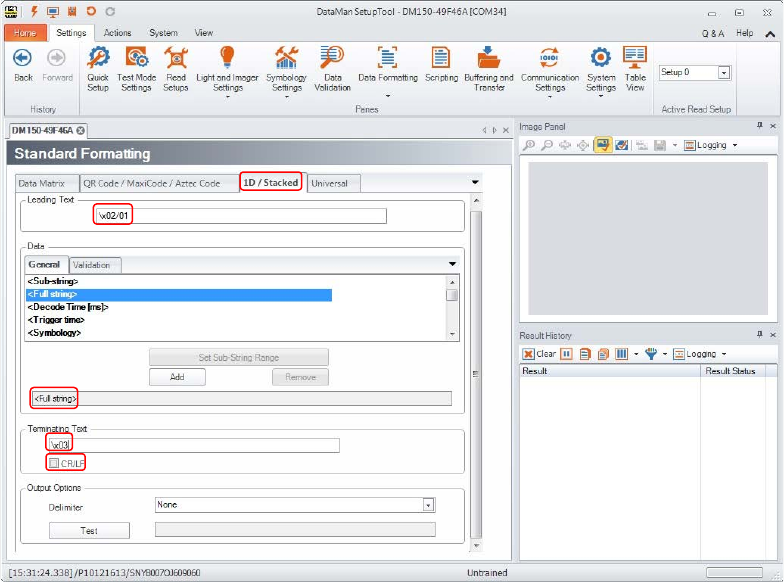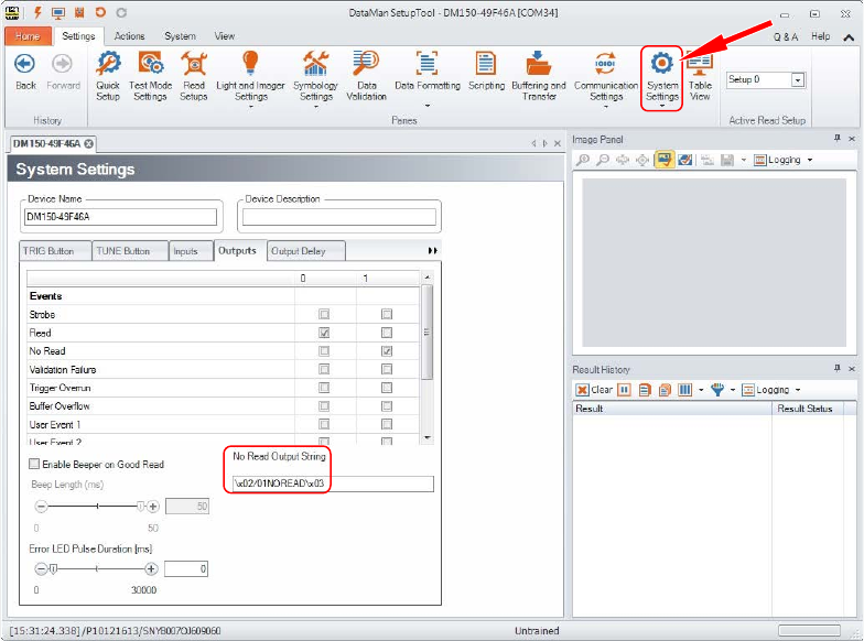 ► Geben Sie im Register "Outputs" unter "No Read Output String" den String "NOREAD" ein.