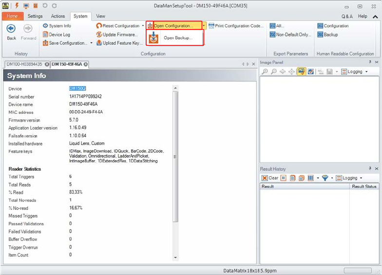 Über das Untermenü "Open Configuration…" können lokal gespeicherte, bildspezifischen Daten