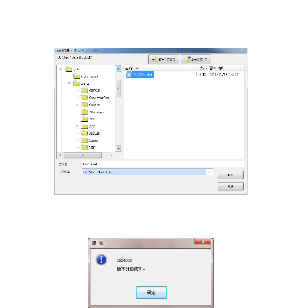如选择文件(*.dat),按下“打开”,即读入文件,对所指定的供应装置之固件开始版本升级。
