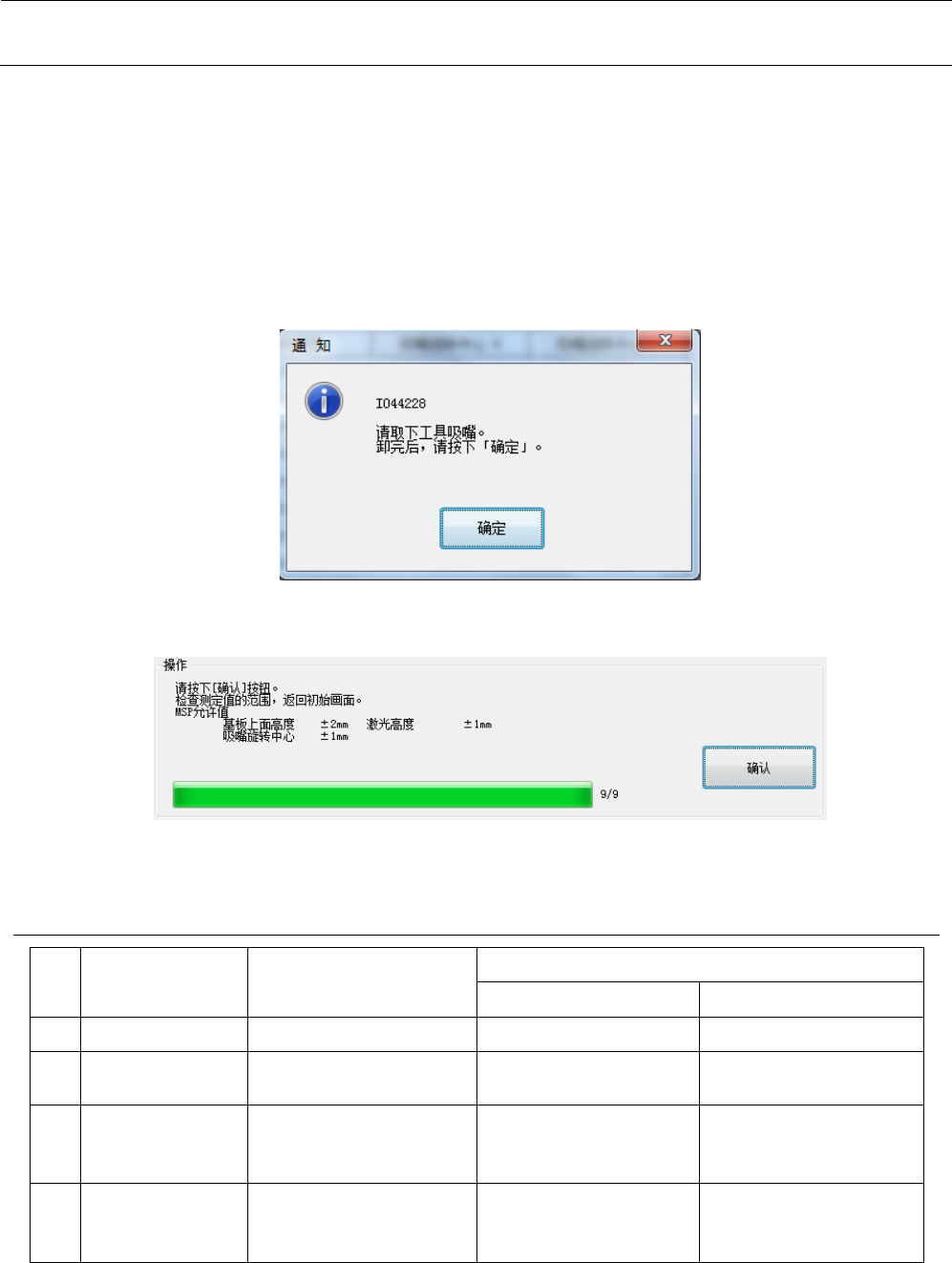 对话框结束时,在实行设备切换时检查有无吸嘴,如果还装着吸嘴,将显示信息要求拆下吸嘴。