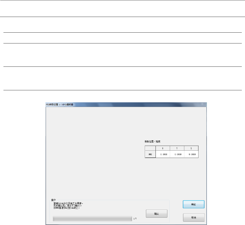 MS 参数 5- 10 5-4 HMS 偏移量 5-4- 1 功能 取得距 OCC 的 HM S 装配位置、装配 高度。 5-4- 2 使用模具 本项目中不使用模具 。 5-4- 3 操作 从菜单中选择“贴片 头参数”-“ HM S 偏移量”后, 会显示以下 对话框。