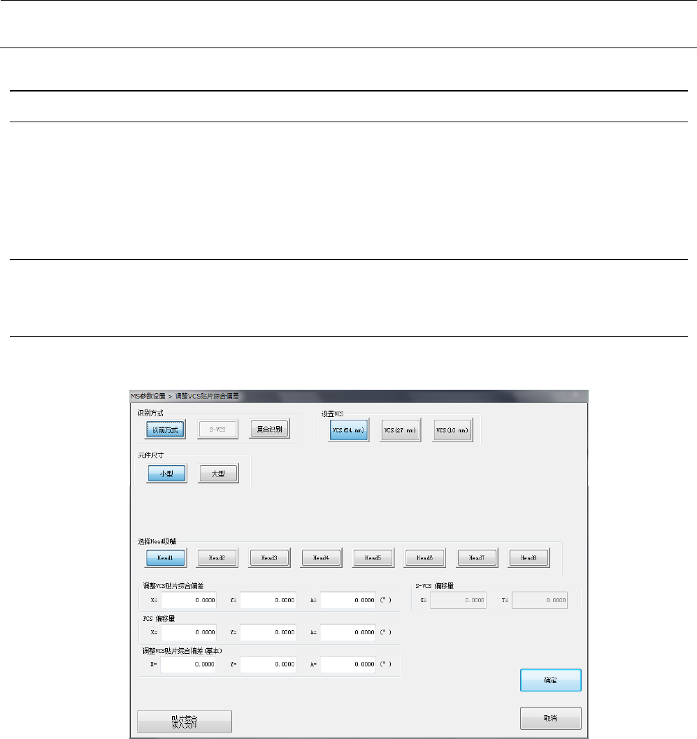 请分别进行选择,在“Select Bank”和“设置VCS”中选择设置对象VCS,在“选择Head吸嘴”中选择