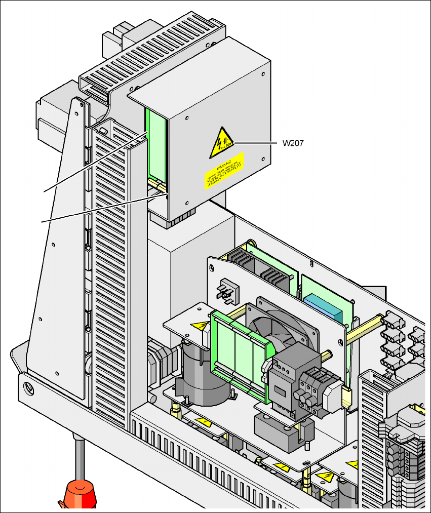 Fig. 2.2 - 12 Chapa de aviso W207 na limitação da corrente de ligação de alimentação de corrente elétrica