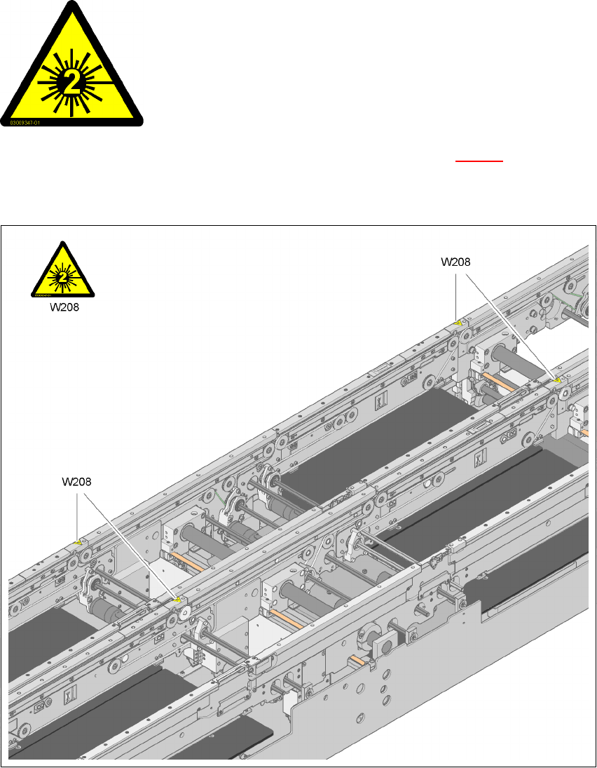 Chapa de aviso W208 "Classe de Laser 2" no transporte das PCI na Fig. 2.2 - 13, nº do artigo