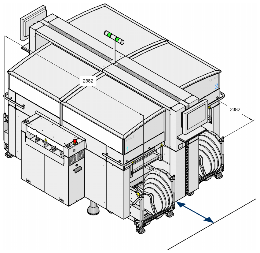 Fig. 3.4 - 7 Espaço para manobra do carro de componentes na máquina automática HF