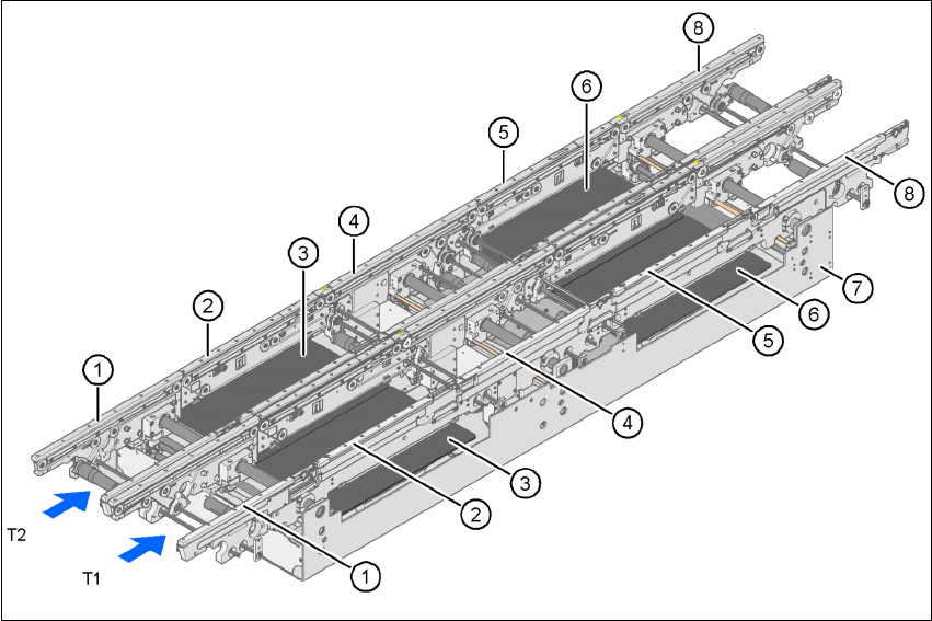 trica de laser regista a posição da PCI. Logo que uma PCI atinge a sua posição teórica, a correia