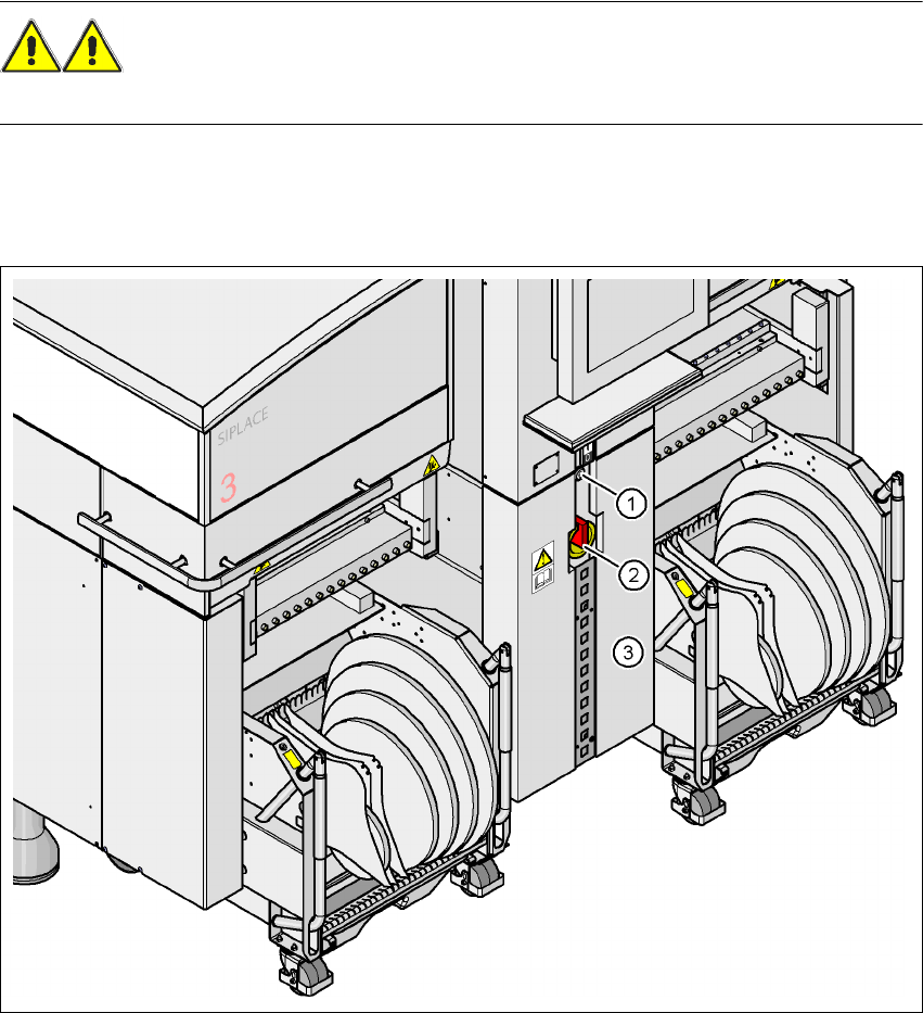 Manual do usuário SIPLACE Série HF 4 Montagem e arranque Versão de software SR.50x.xx Edição 01/2006 PT 4.3 Infraestrutura d o local de instalação 171 4.3.3.1 Not as sobre perigos ALERT A A máquin a autom ática é aliment…