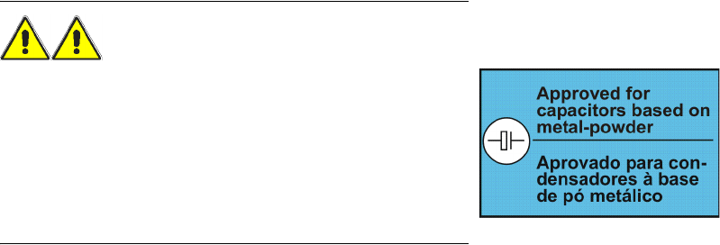 Por favor, siga as instruções seguintes para minimizar o risco na montagem de condensadores à
