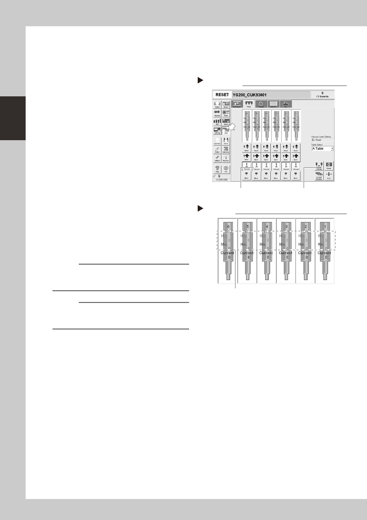 Select [Unit] - [Head], and set the [Vacuum]