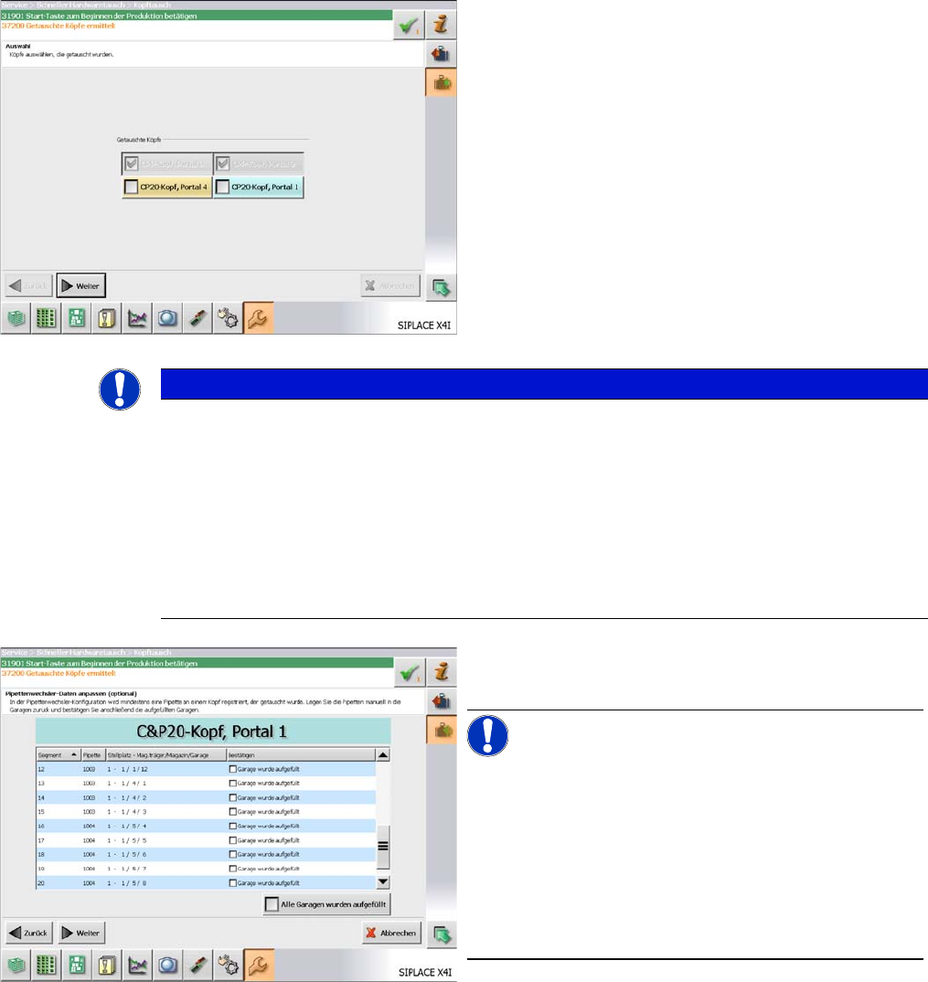 – Es können vorkalibrierte Köpfe vom Kopfteststand bzw. aus dem Lager verwendet werden.
