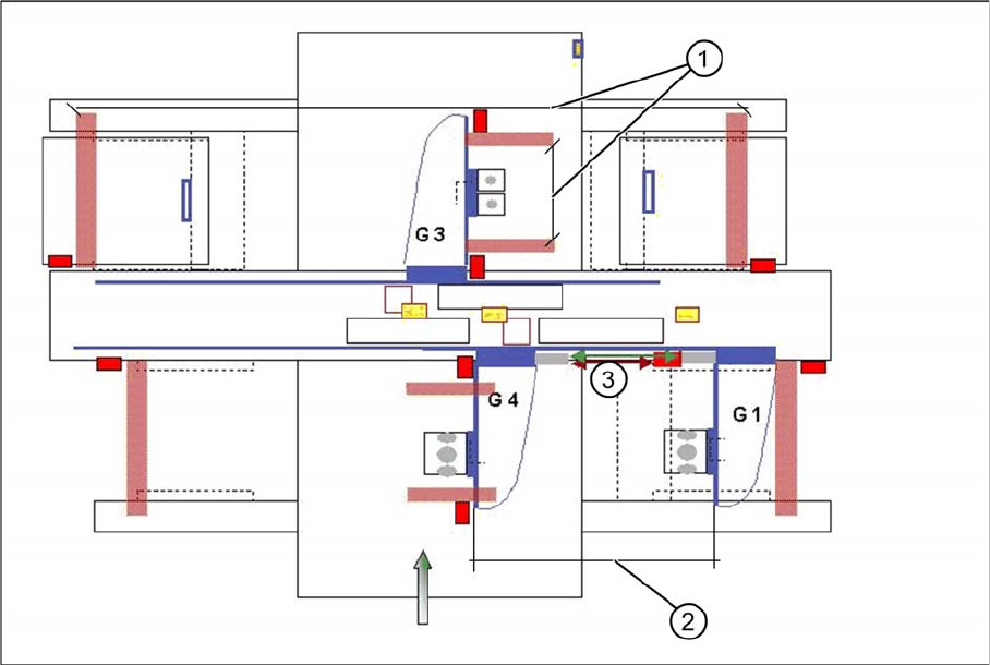 1. Die Ermittlung der Verfahrbereiche für die X-Achsen am Portal 1/3/4 und die Y-Achse des Portals 3
