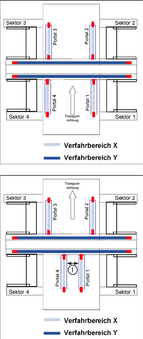 sition Portal 4 = Minimale Position Portal 1 + 480 mm (Portalbreite) + 20 mm Sicherheitsabstand.