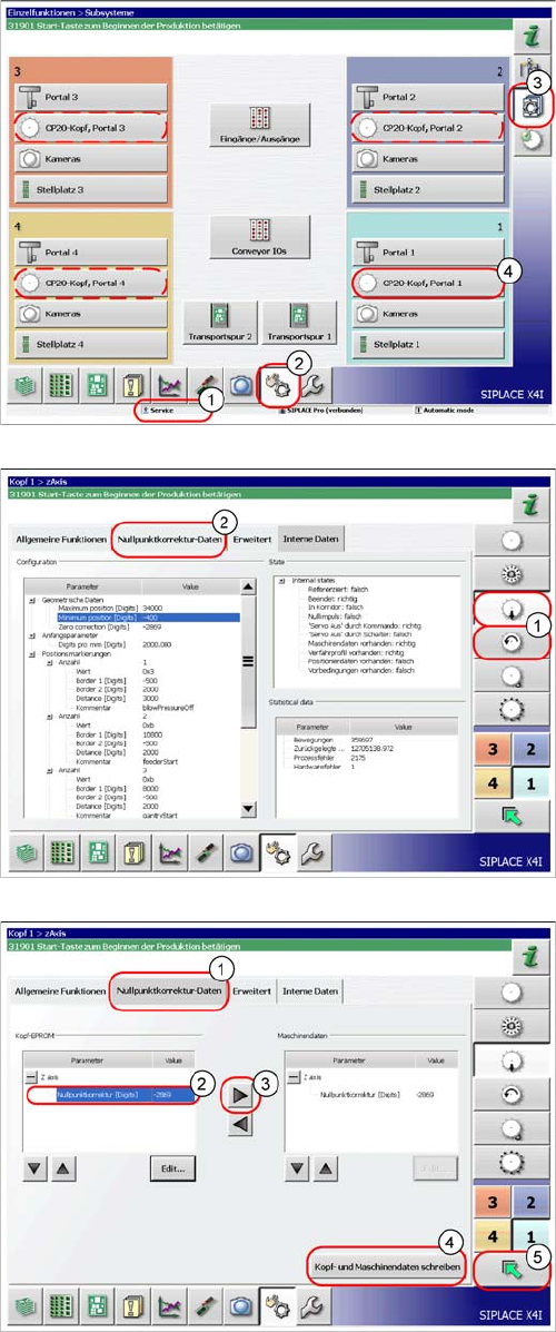 Nach dem Tausch einer Baugruppe müssen die gültigen Maschinendaten an der Station auf