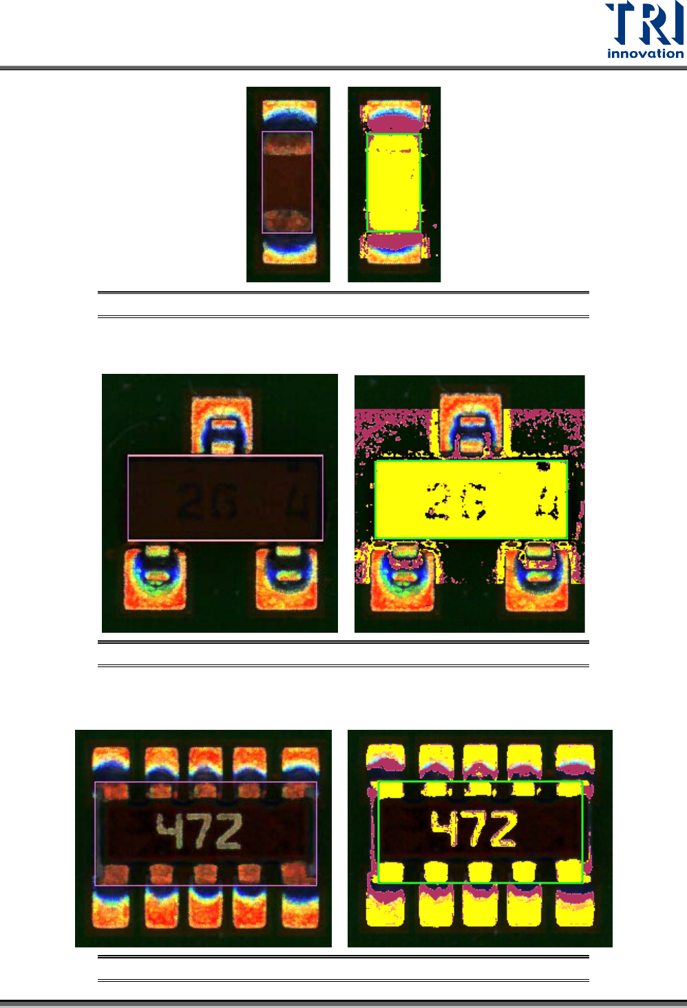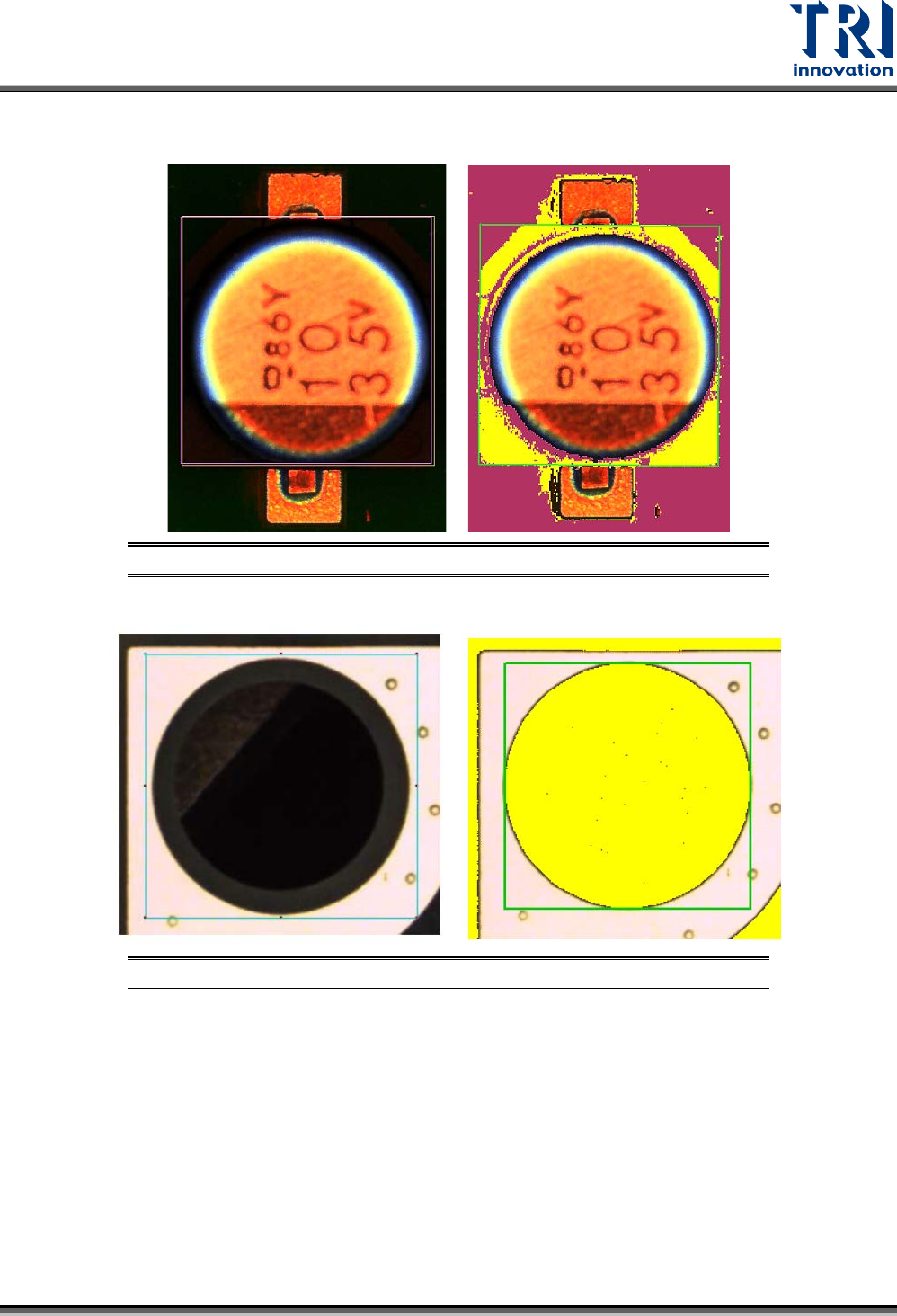 Test Research, Inc. TR7500Q E User Gu ide – S o f twar e 95 − CAE :用來檢測鋁 質電容。選色時請根據 CA E 本體參數內的設定 (Bas e 或 Component ) ,來選擇鋁質電容的 底板或是圓形電 容部分顏色, 如下圖所示 。 圖 153 :本 體檢測框 – CAE 模式色彩選 取方式 − C ircu lar :用於檢測各種圓形元件。選色 時請選出圓形的部 分…