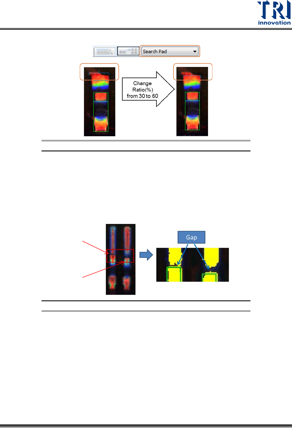 − 比率(%):設定間隙的寬度比(所選顏色寬度/Lead 框的寬度),預設為 30。