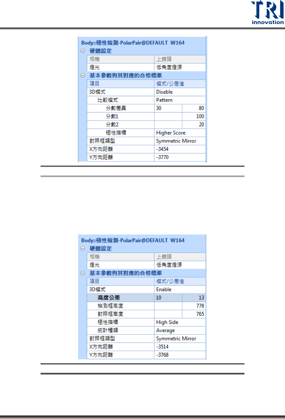 圖 187:極性檢測框參數設定畫面 – 3D 模式開啟