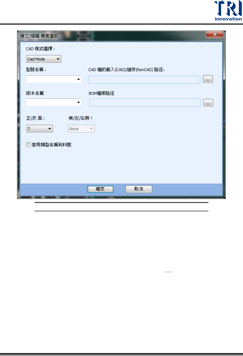 – 型號名稱:輸入版本名稱,預設為 CAD 檔名。