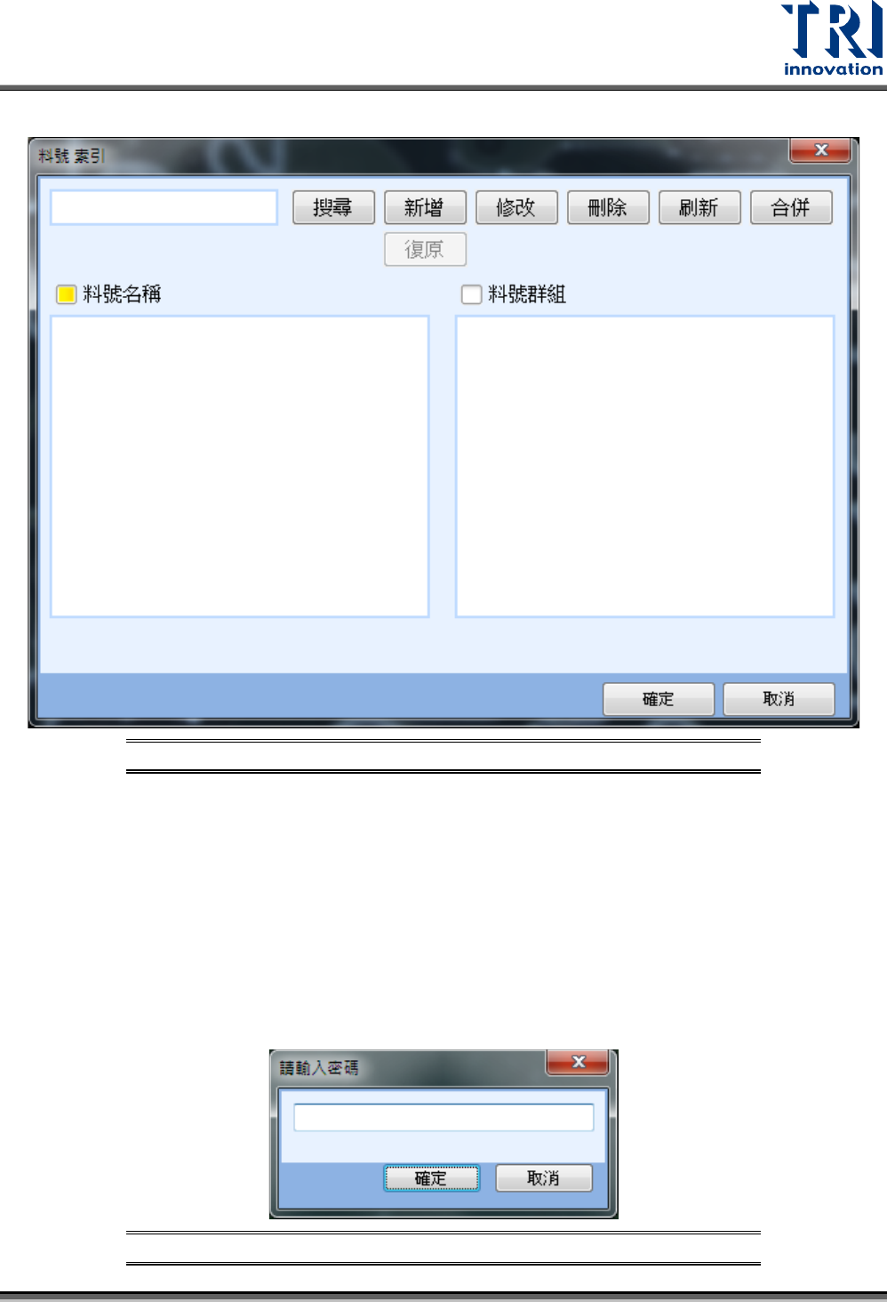 圖 418:料號索引設定視窗