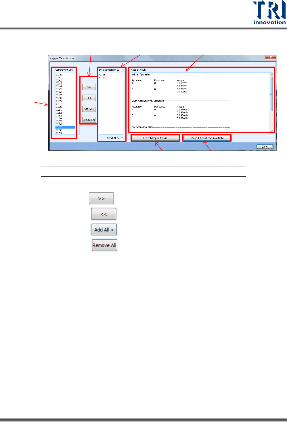 Test Research, Inc. TR7500Q E User Gu ide – S o f twar e 305 圖 483 :流 程配置 – Output Data Setting 畫面 步驟 4. 檢測完成 後會在該專案所 在資料夾產生一個 KAPPA 資料夾存放原始資料。 步驟 5. 點選 [ 工具 ]>[ 分析 ]>[ KAPPA ] 進入 KAPPA 功能介 面。 圖 484 : 工具 – K AP PA …