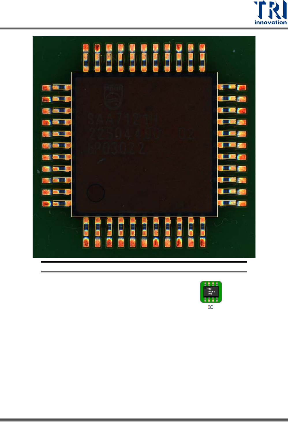 Test Research, Inc. TR7500Q E User Gu ide – S o f twar e 48 步驟 13. 此時,再次選取上排所 有的導腳框後,點 選 ,系統會在積體電路元件的下 方一排導腳上產生導腳 框。 圖 74 :編輯 元件資料庫 – 積體電路 (IC) 元件 – 垂直 鏡射產生多個 導腳框 步驟 14. 接著,選取上下兩排所 有的導腳框,點選 並選擇 90 度,系統會在 積體電路元件的左右兩 排導腳上產…