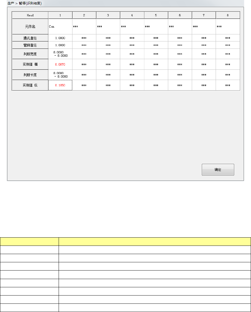 显示引脚的识别信息。未测量的贴片头项目显示「***」。