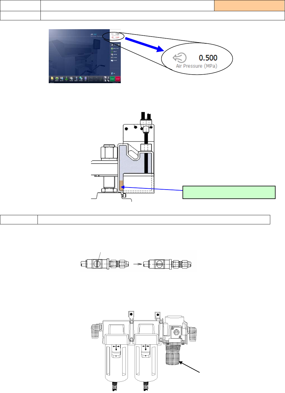 2)若压力值不在上述范围内,请检查工厂内是否有空气泄漏。如果没有异常,请按「调整方法」重新调