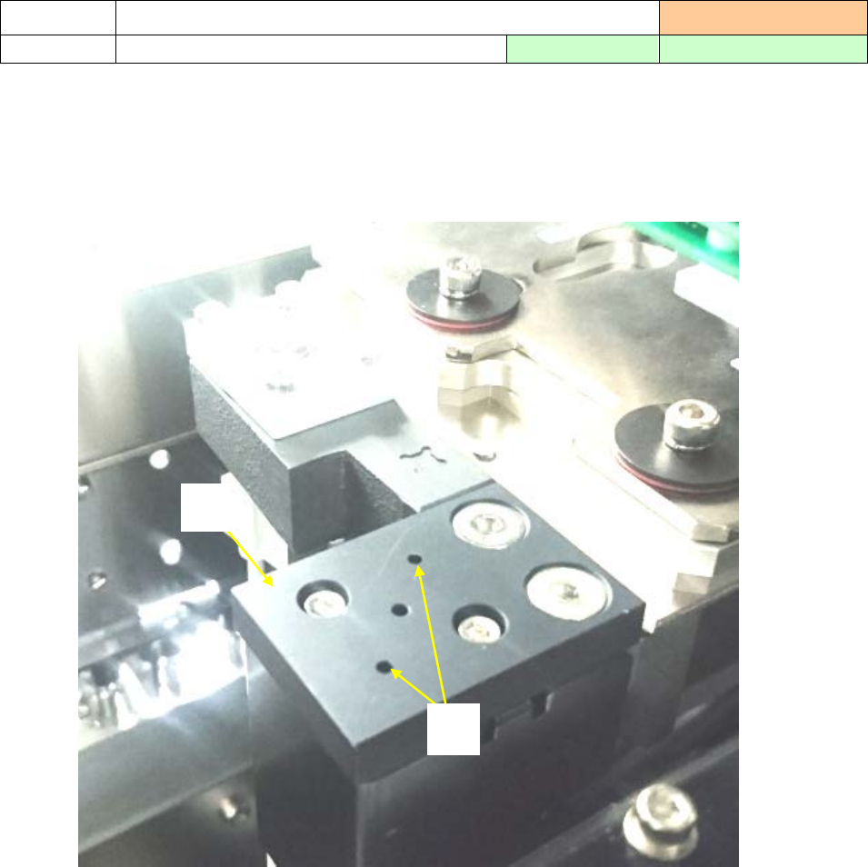 操作手册 3- 11 1) 检查 CAL 块①的上面 和第一标记②上有 无灰尘等异物 ,有异物时请进行清 扫。 若第一标记处有脏污 ,可能会导致 MS 参数误设置。 如果去不掉脏污,请 沾少量酒精( IPA ) 进行清扫。 清扫部位 3-2- 3 CAL 块 实施频度 :每周 清扫内容 清扫 CAL 块 使用工具: 抹布 推荐溶剂 : IPA ① ②