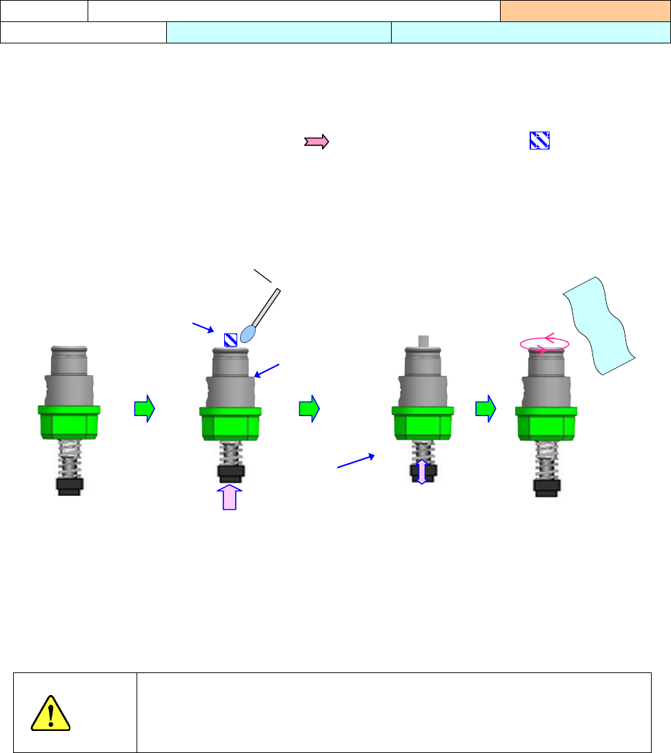 2) 为了防止聚氨酯尖端通过喷嘴清洁从聚氨酯喷嘴尖端剥落,请使用超声波清洁,使用夹具等将喷嘴倒置,