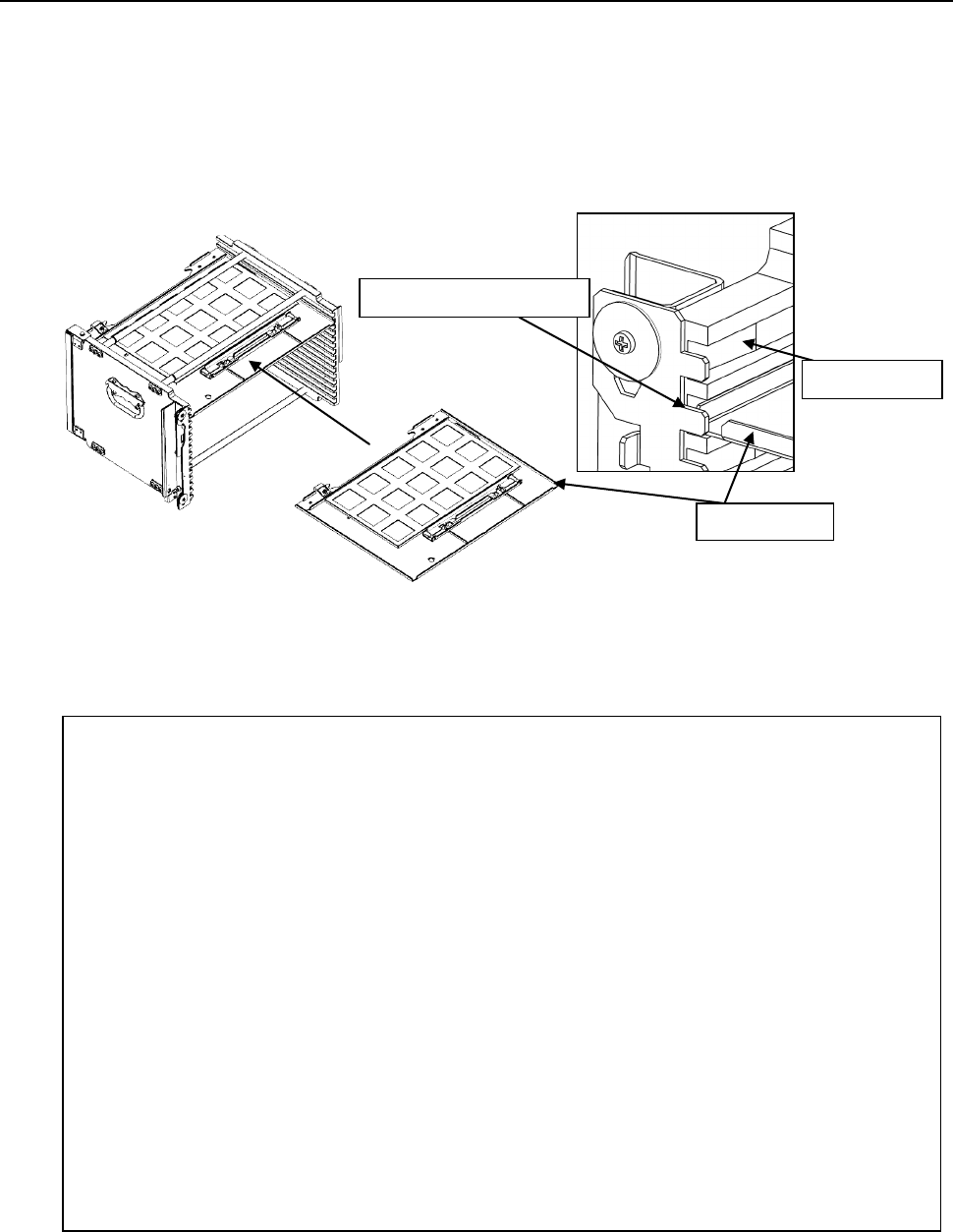 托盘座板要完全推入。如果未完全推入,搁在托盘导轨端部挡块③上就算安装好了,