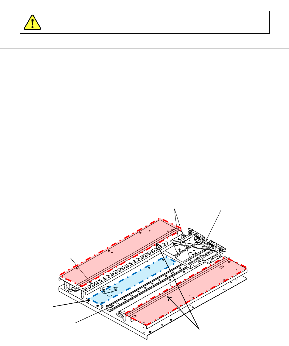请在 Y 轴直动轨两侧的轨道面上薄薄地涂敷润滑油。