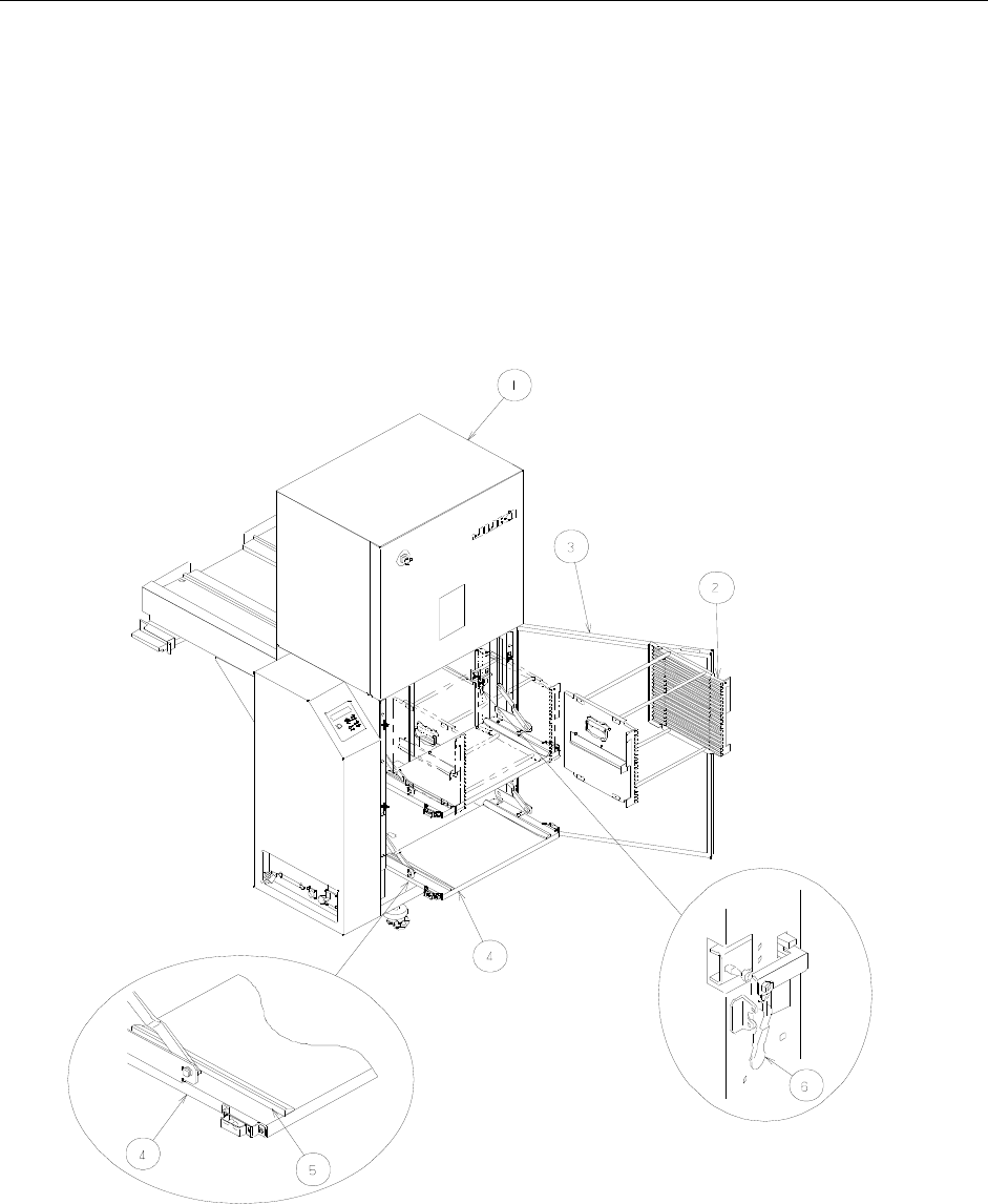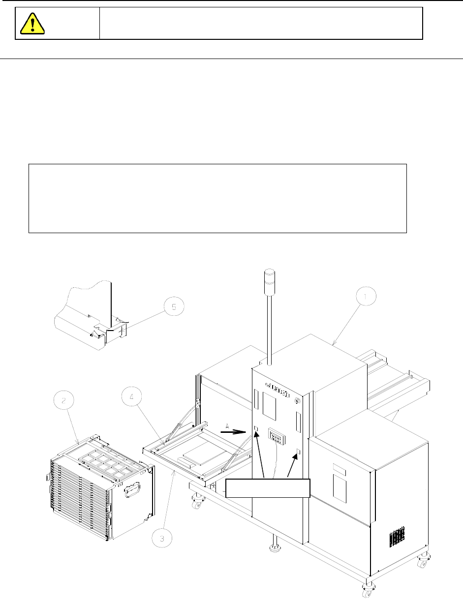 TR5 Series 使用说明书 3-6 3.1.4 托盘叠盘箱的安装 注意 为了防止人身伤害,请确认机器已完全停止后再进行作业。 3.1.4.1 TR5DNR/5DNX 步骤 1 :请使装置成为脱机状态。(按元件补充按钮,使 LED 熄灭。) 步骤 2 :请把「 叠盘箱装载拉盖」朝身前拉开。 步骤 3 :请把「 托盘叠盘箱」沿着「 叠盘箱导轨」向内推入。 装好后,请确认「 叠盘箱安装杆」已上升。 步骤 4 :请把「 …