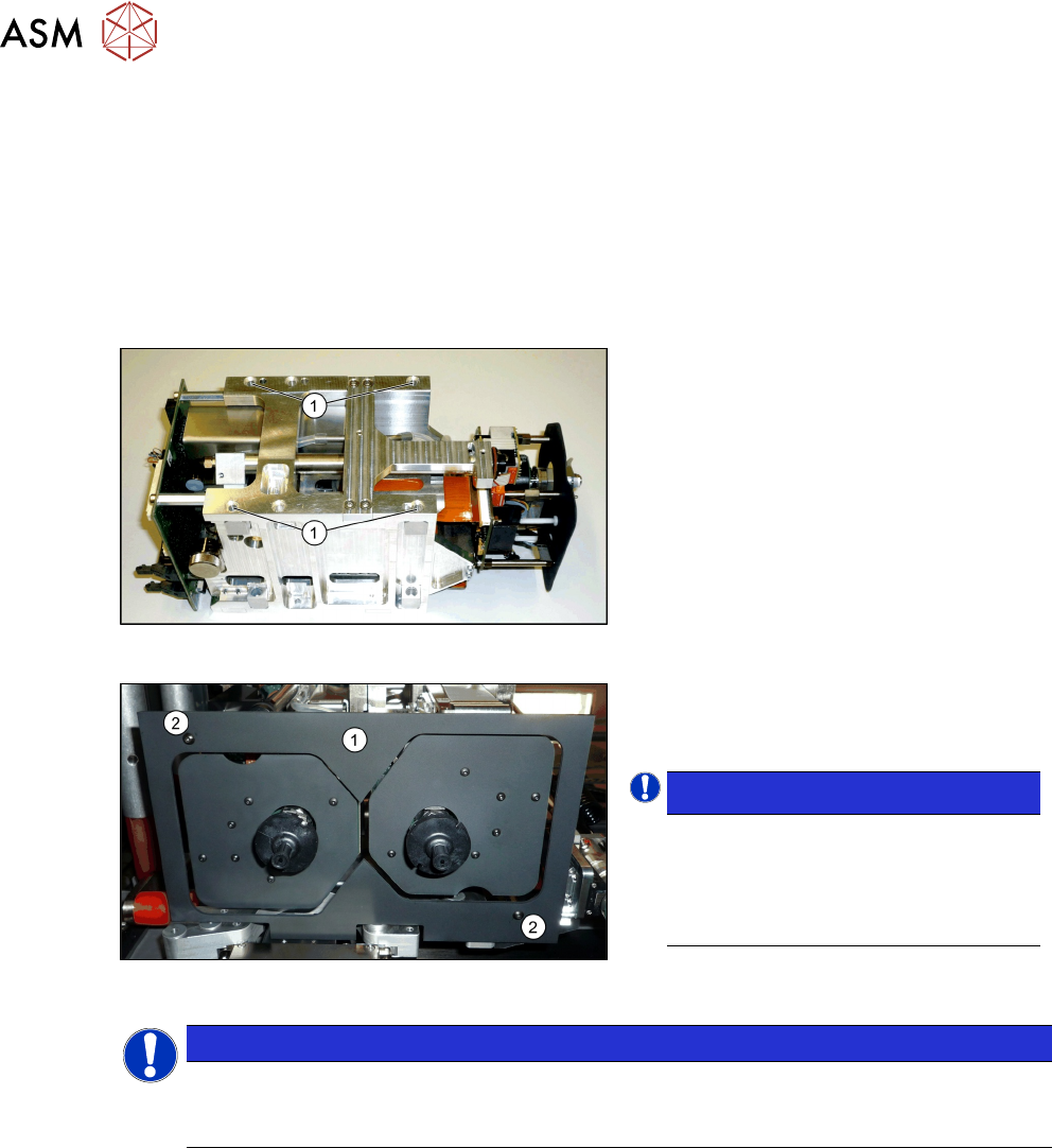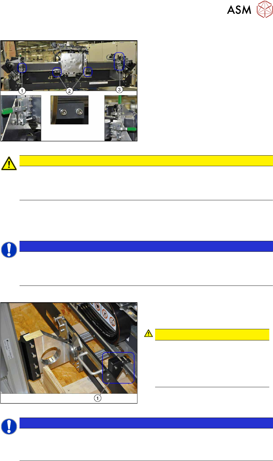 ► Loosen the two screws fastening the transportation locks (2) to the head plate in each case