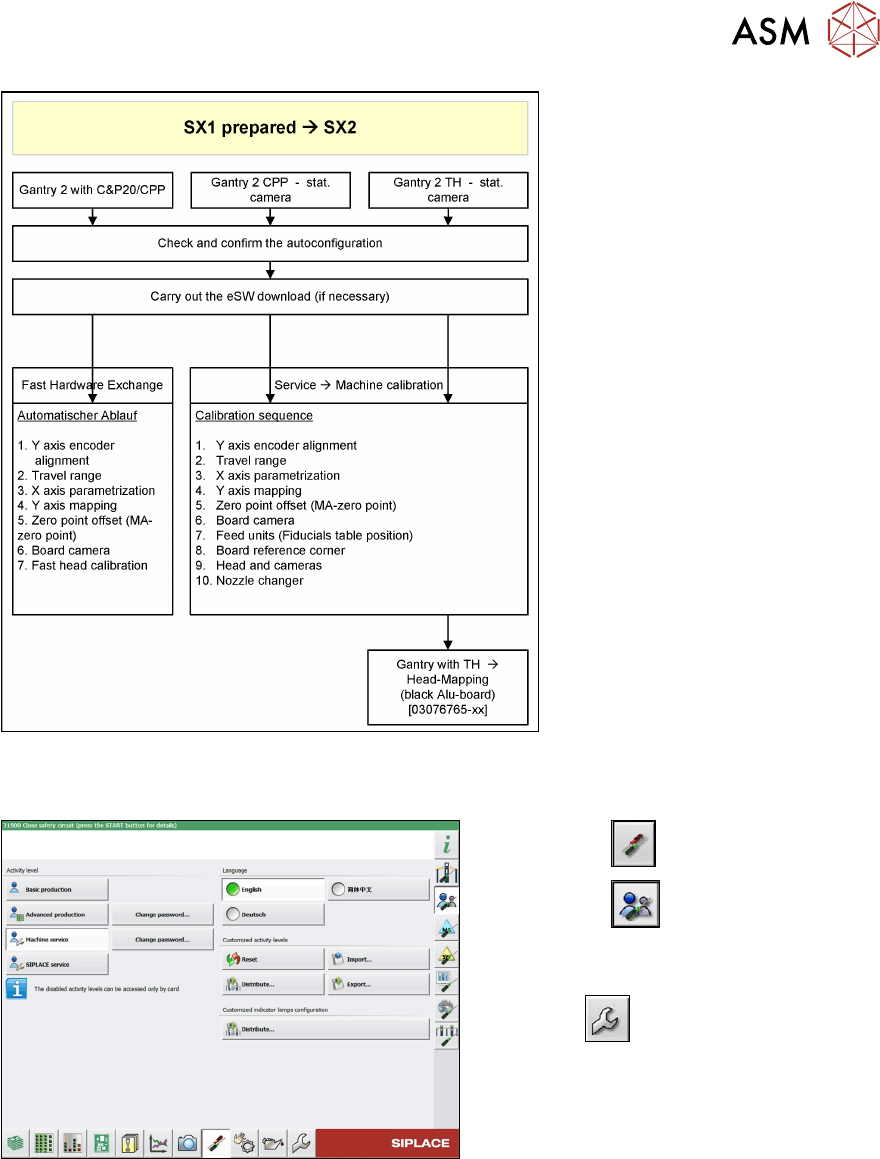 3 Fitting the gantry 3.7 Final Work 132 Assembly Instructions / Montageanleitung SIPLACE SX1/SX2 V3 Reconfiguration Kit Twin VHF mit Portal Reconfiguration Kit Twin VHF with Gantry 06/2020 Fig.67: Service menu ► Select …