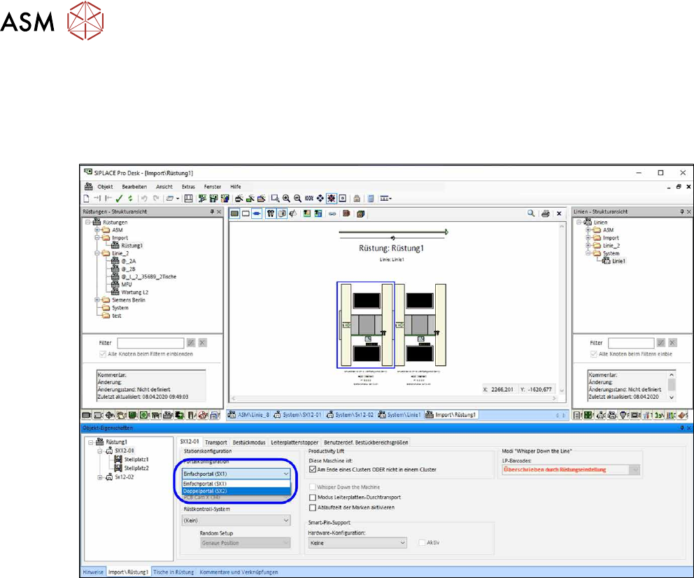 Abb.74: Einstellung Stationskonfiguration Einfachportal (SX1) oder Doppelportal (SX2)
