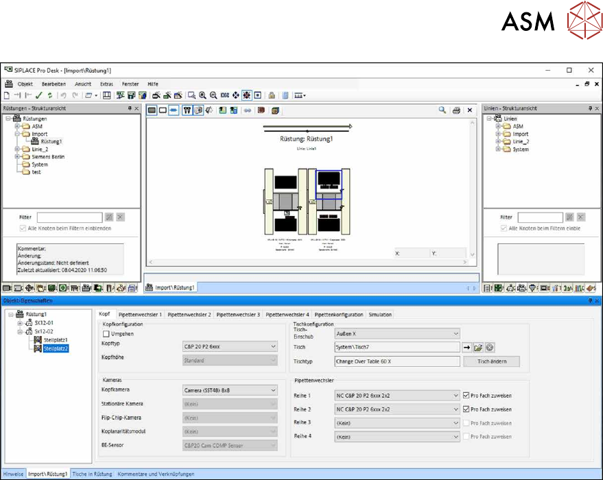 Am Stellplatz 2 muss der entsprechende Kopf, sowie Kameras, Pipetten und Tische editiert wer-
