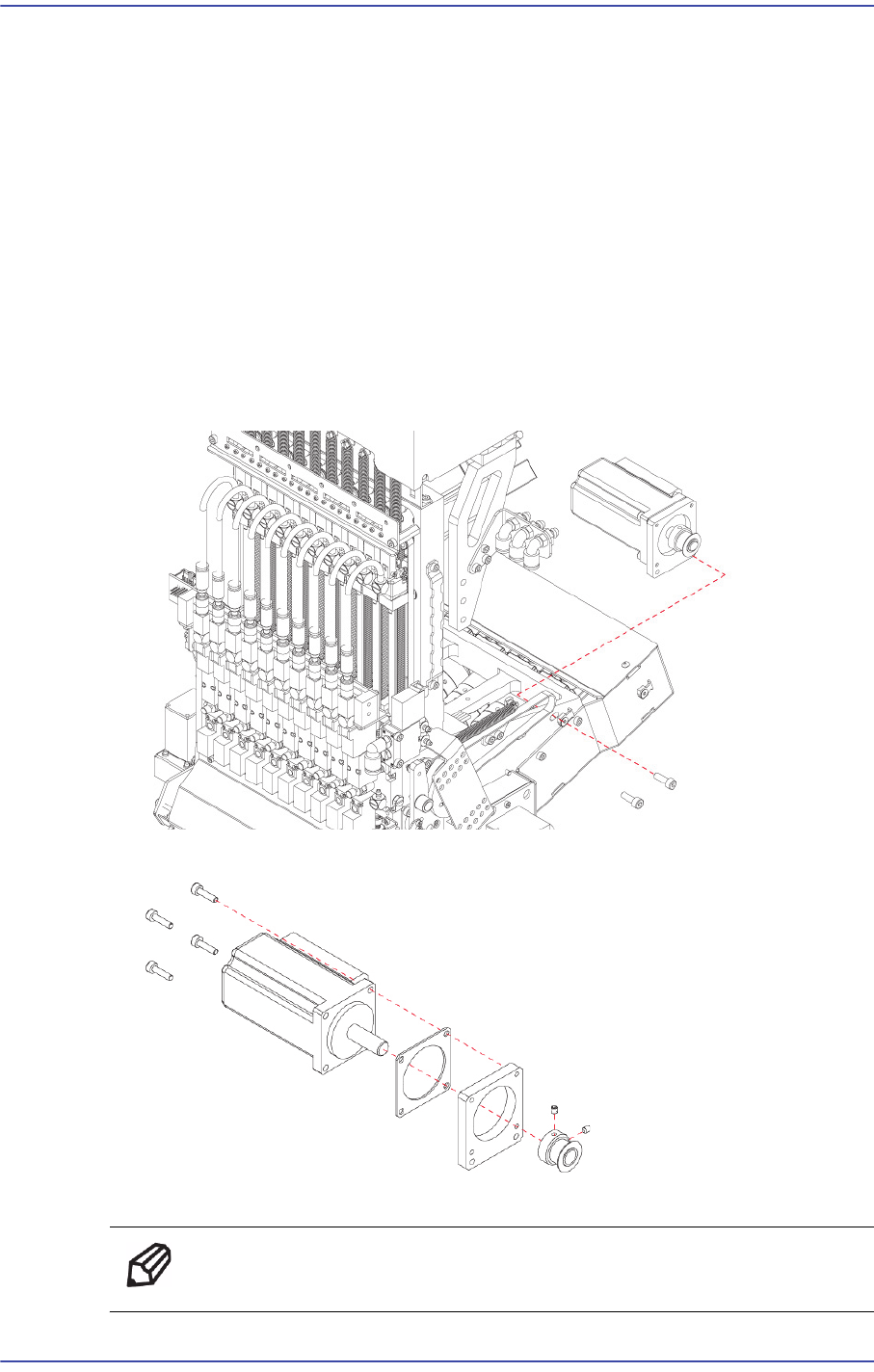 4) Slightly loosen the fixing bolts(2-M4*12) securing the motor and remove the loosened