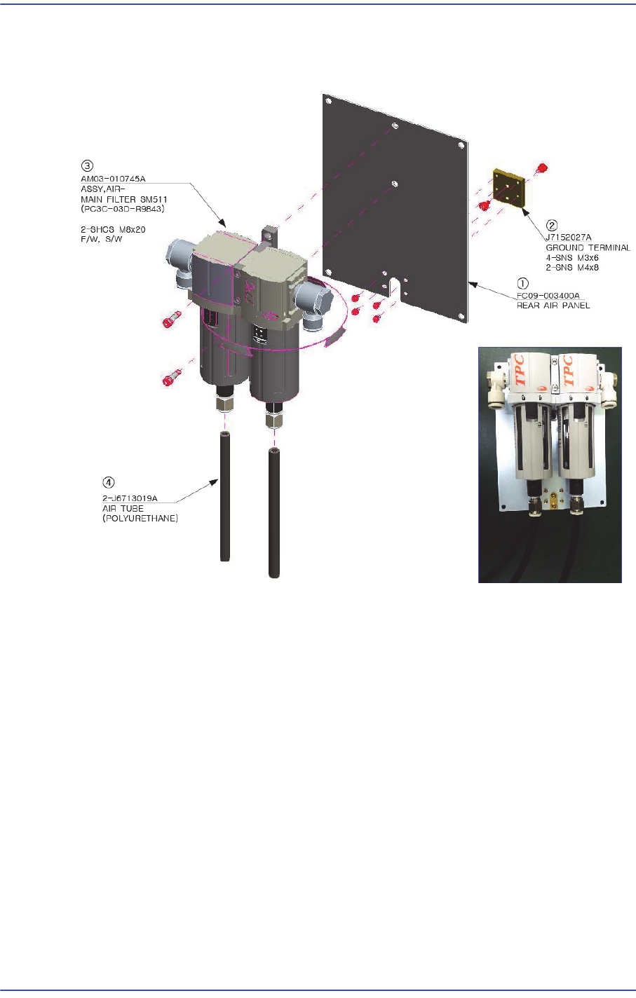 11-15 Vacuum 11.4. Air Front Panel 11.4.1. Configuration of the Air Front Panel 1: FC09-003398A / FRONT AIR P ANEL / 1EA 2: J6709001 2B / REGULA TOR / 1EA 3: J1301 187 / ELBOW FITTING / 2EA 4: J671 1 183A / ELBOW_MINI_FI…