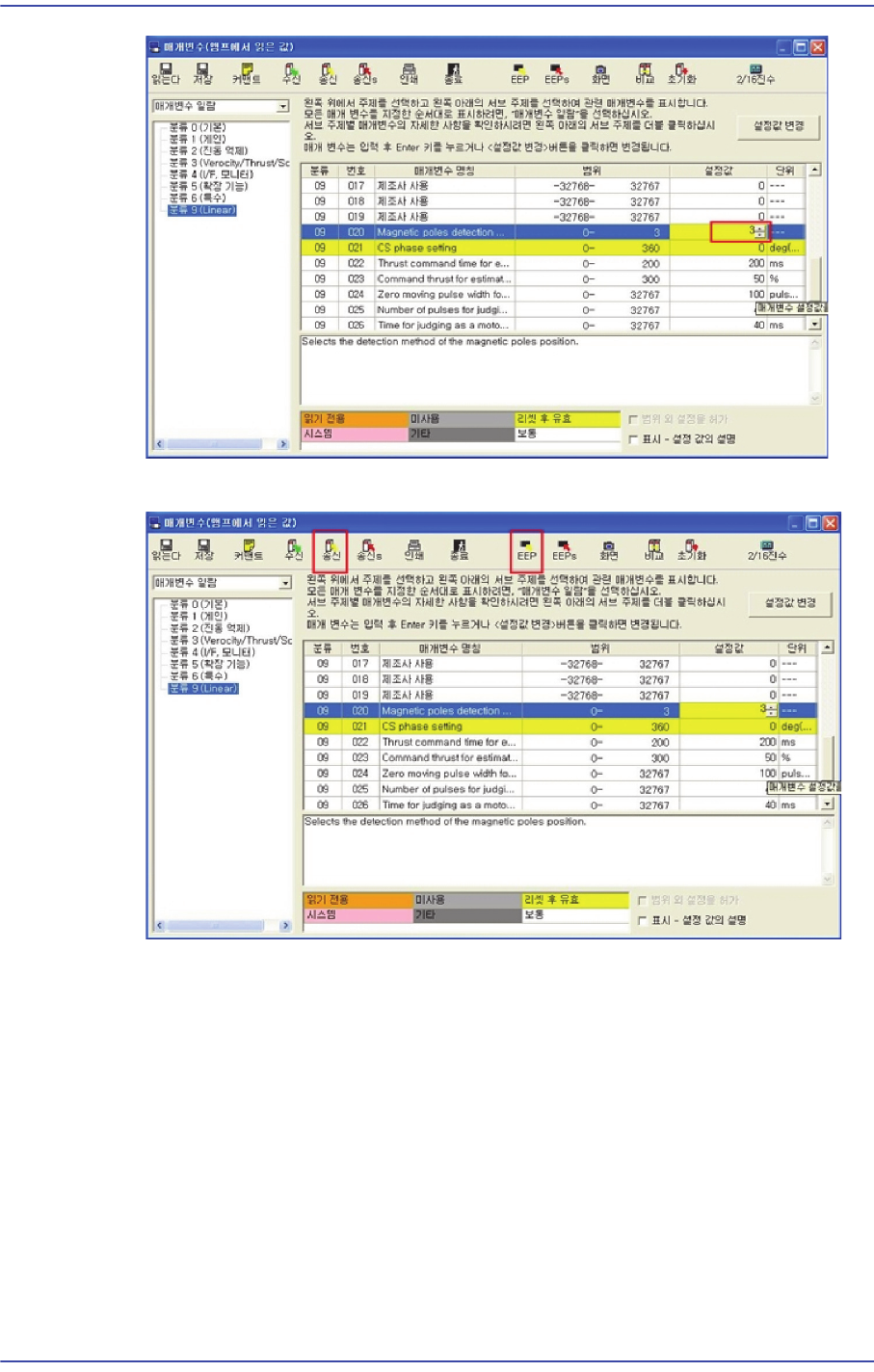 15) In order to turn off the magnetic estimation, change ‘No. 20’ of ‘Classification 9’to
