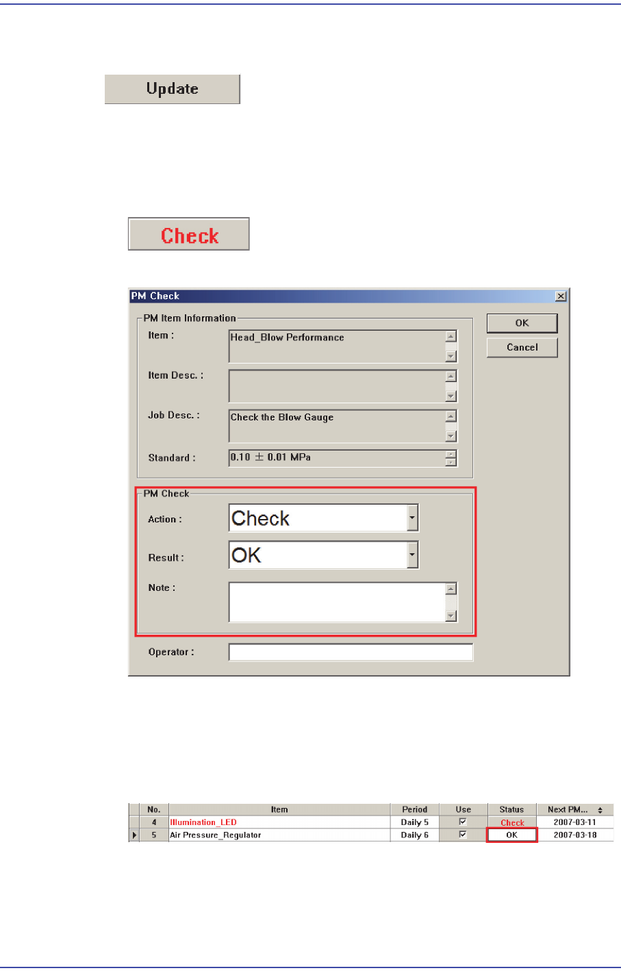 <Status> column is changed from “Check” to “OK” and the date is updated to the