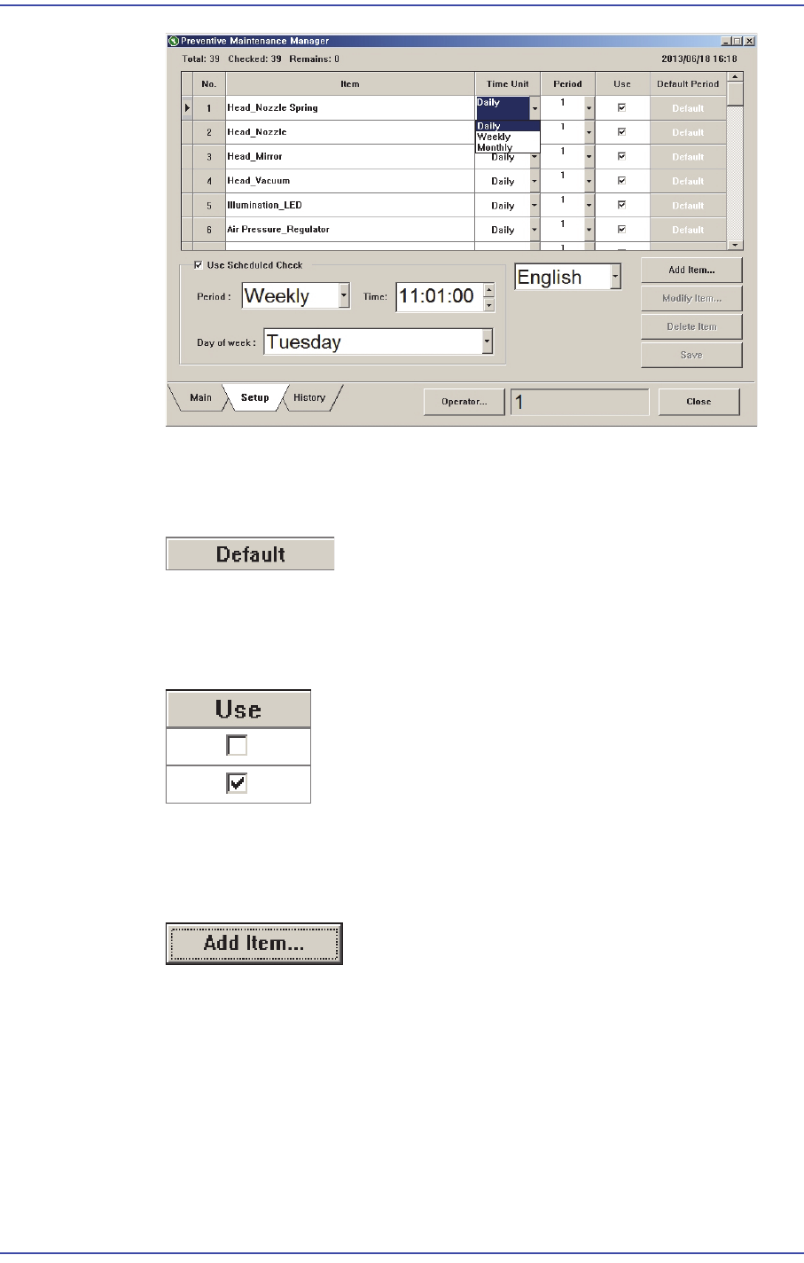 Enter an item to be added in the ‘Add PM Item’ dialog box and set the check period.