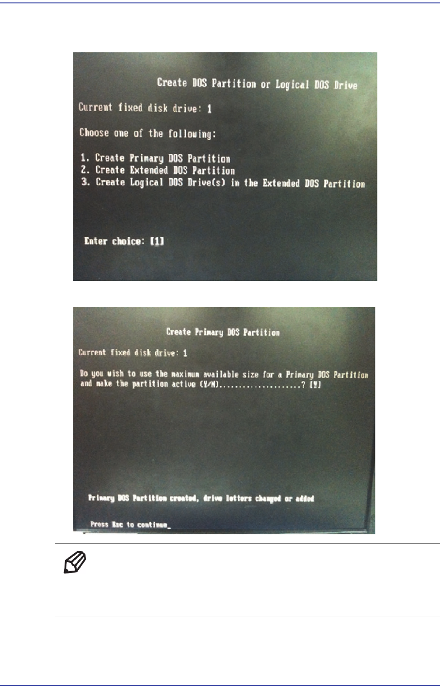 ReferenceIf the Primary DOS Partition is not created, delete the partition
