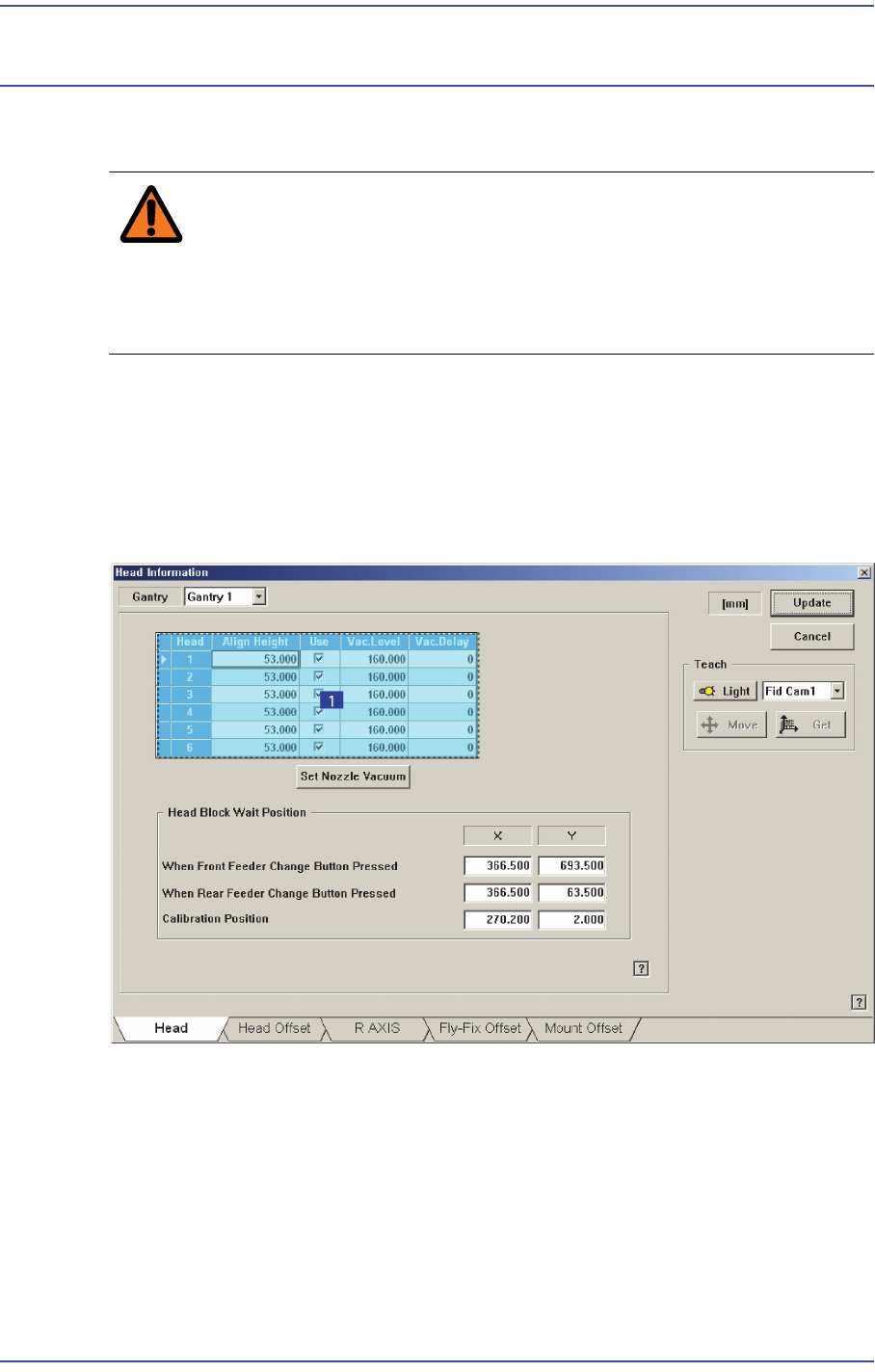 Used to set the Vacuum Delay differently by heads. If a certain head cannot