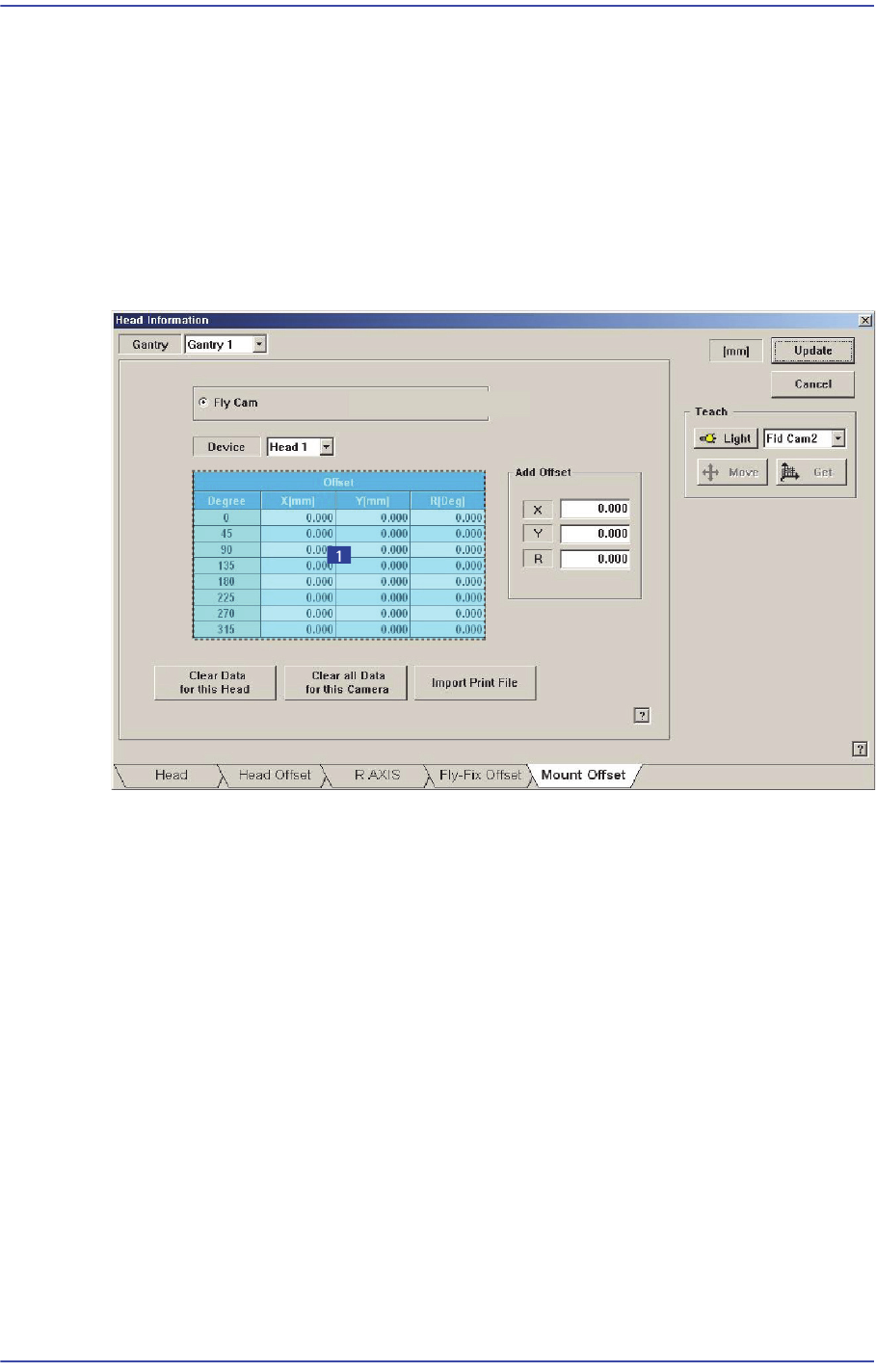 18-9 Machine Calibration Able to delete the placement of fset data of a ll the heads corresponding to the selected camera. <Update> button T ransmits the change data to the equipment and closes the dialog box. …