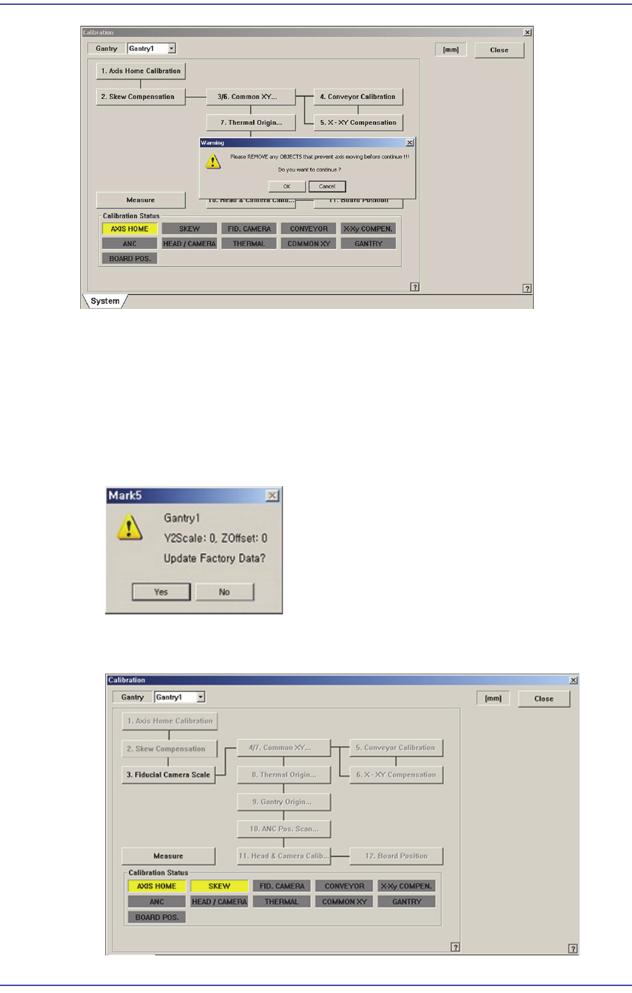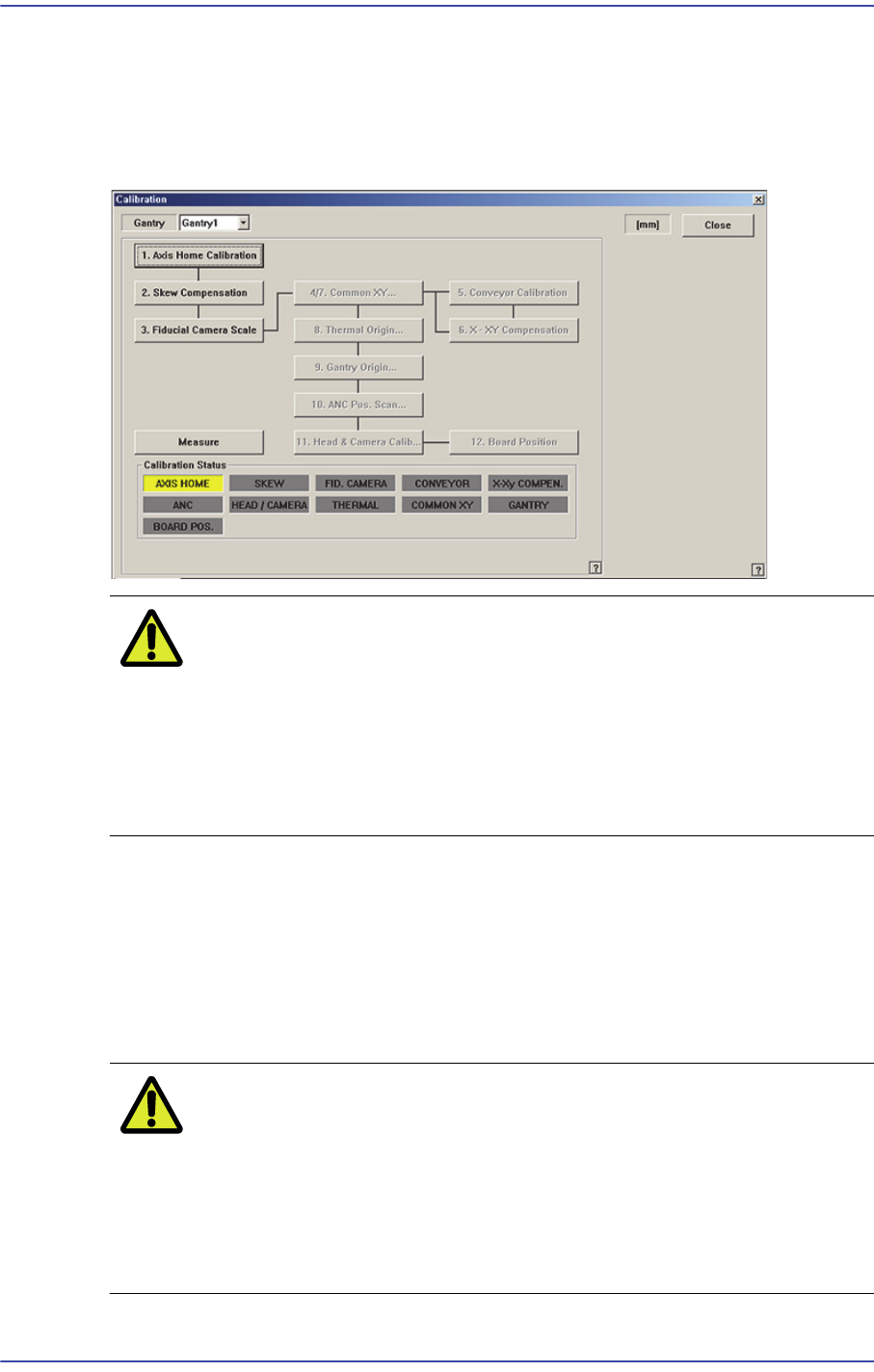 Y1-axis and Y2-axis after movement of equipment. This must be done upon initial