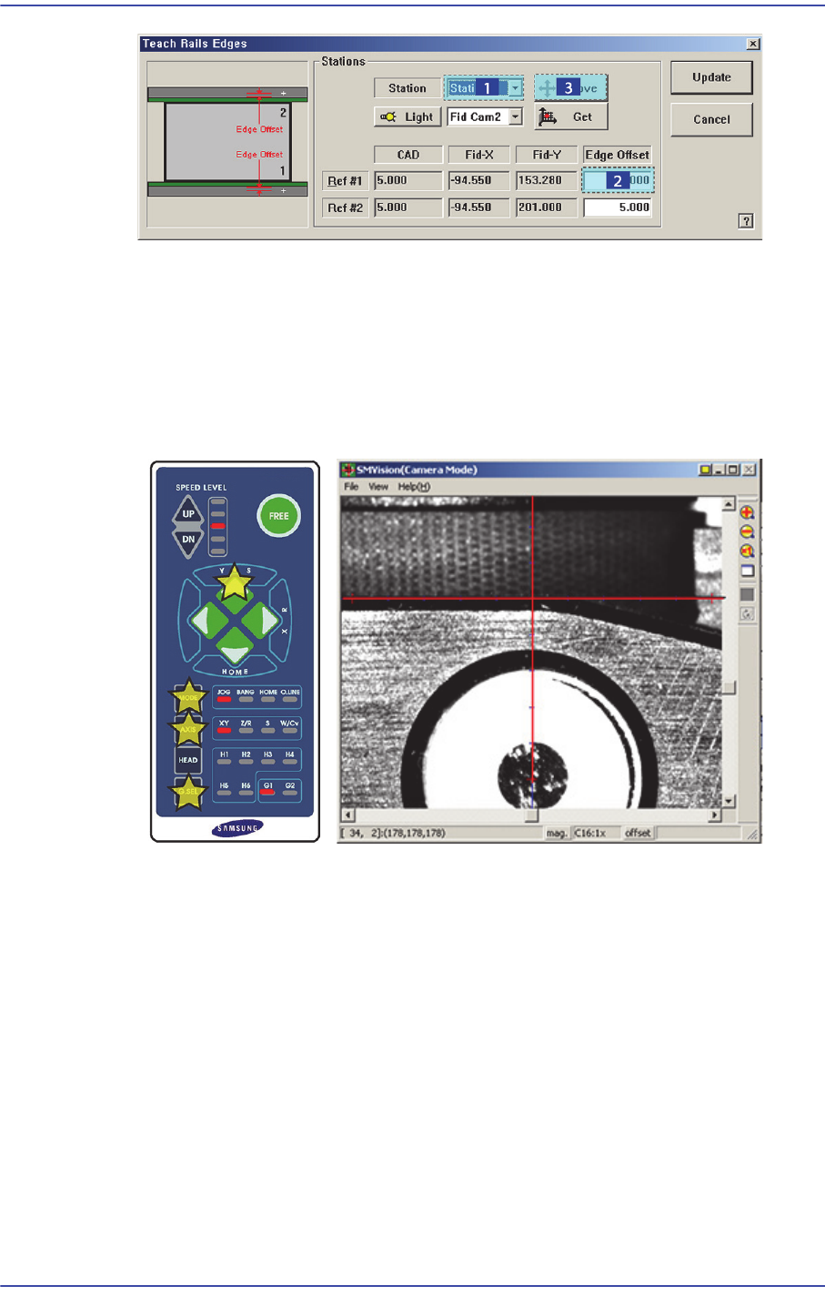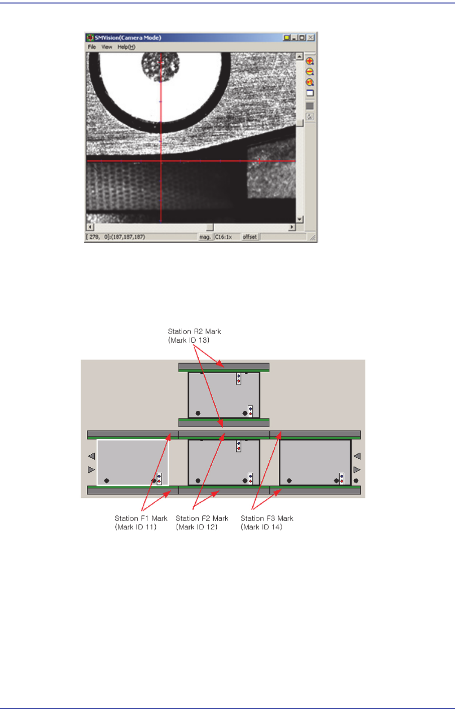 18-32 Fast & Flexible Chip Shooter DECAN F2 Service Manual 8. Then the downward camera (fiducial camera) moves to the corresponding position of the fiducial mark. Select XY by pressing the ‘AXIS’ button using the tea…
