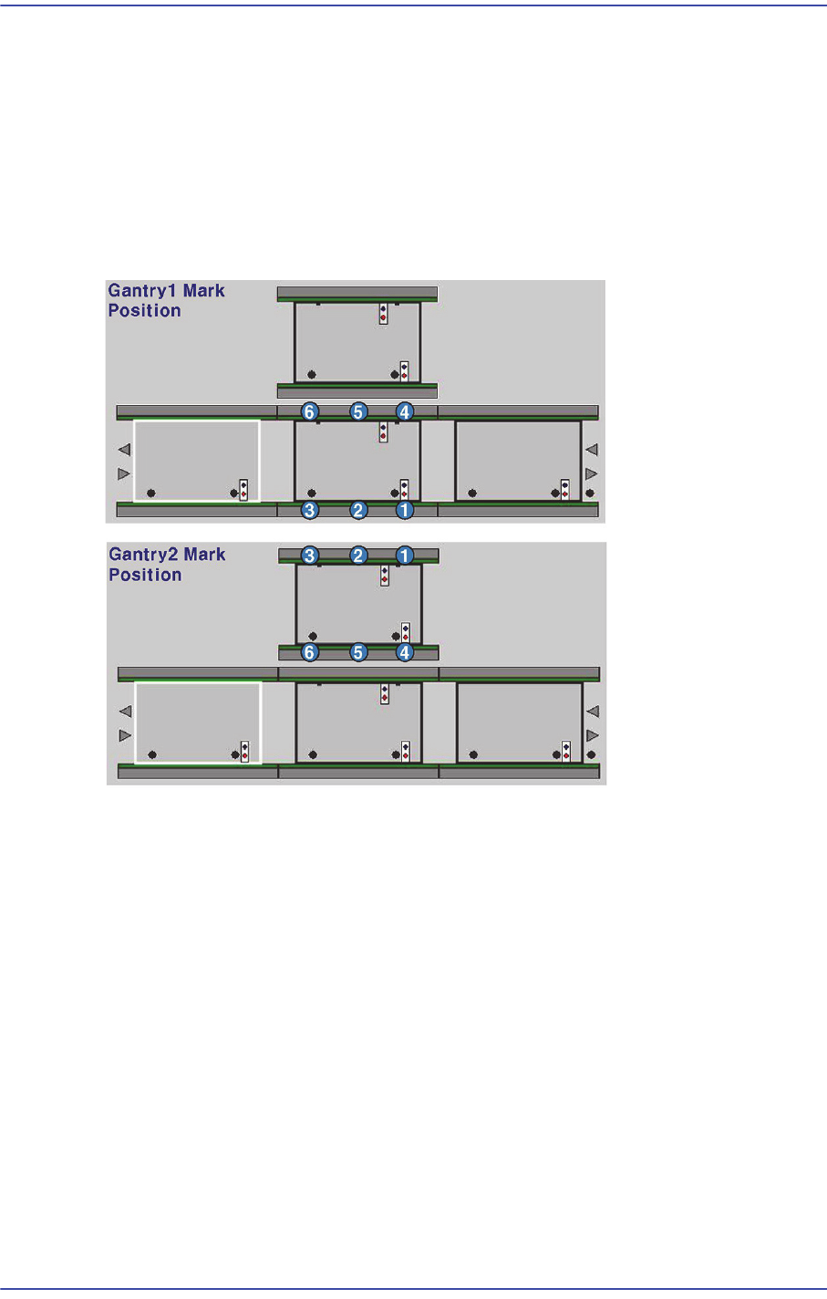 To carry out Calibration, 6 Fiducial Marks on the transport rail must be taught. The order