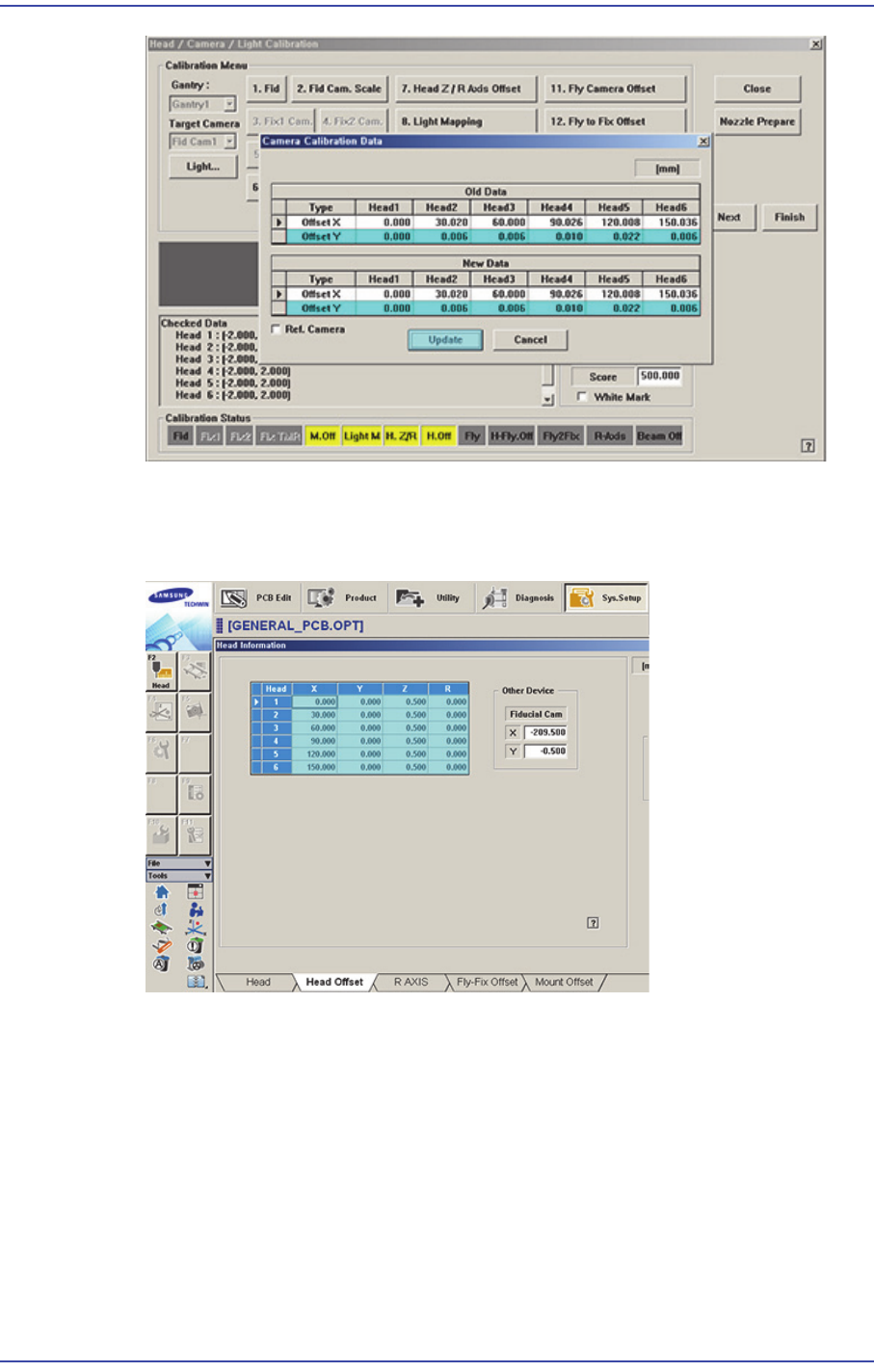 18-64 Fast & Flexible Chip Shooter DECAN F2 Service Manual Memo The range of the reference value fo r the ‘head offset calibration’ are as follows: Head 1 X:-0.06mm~0.06mm, Y : -0.05mm~0.05mm Head 2 X:14.94mm~15.…