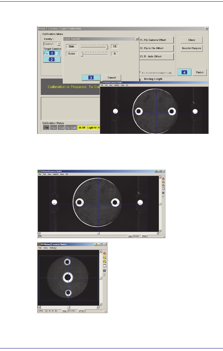 18-67 Machine Calibration box so that the fiducial mark on the calibra tion tool that is seen in the ‘SMV ision’ window can be seen clearly . Then click the <Next> button. 9. In order to perform calibration, recogn…