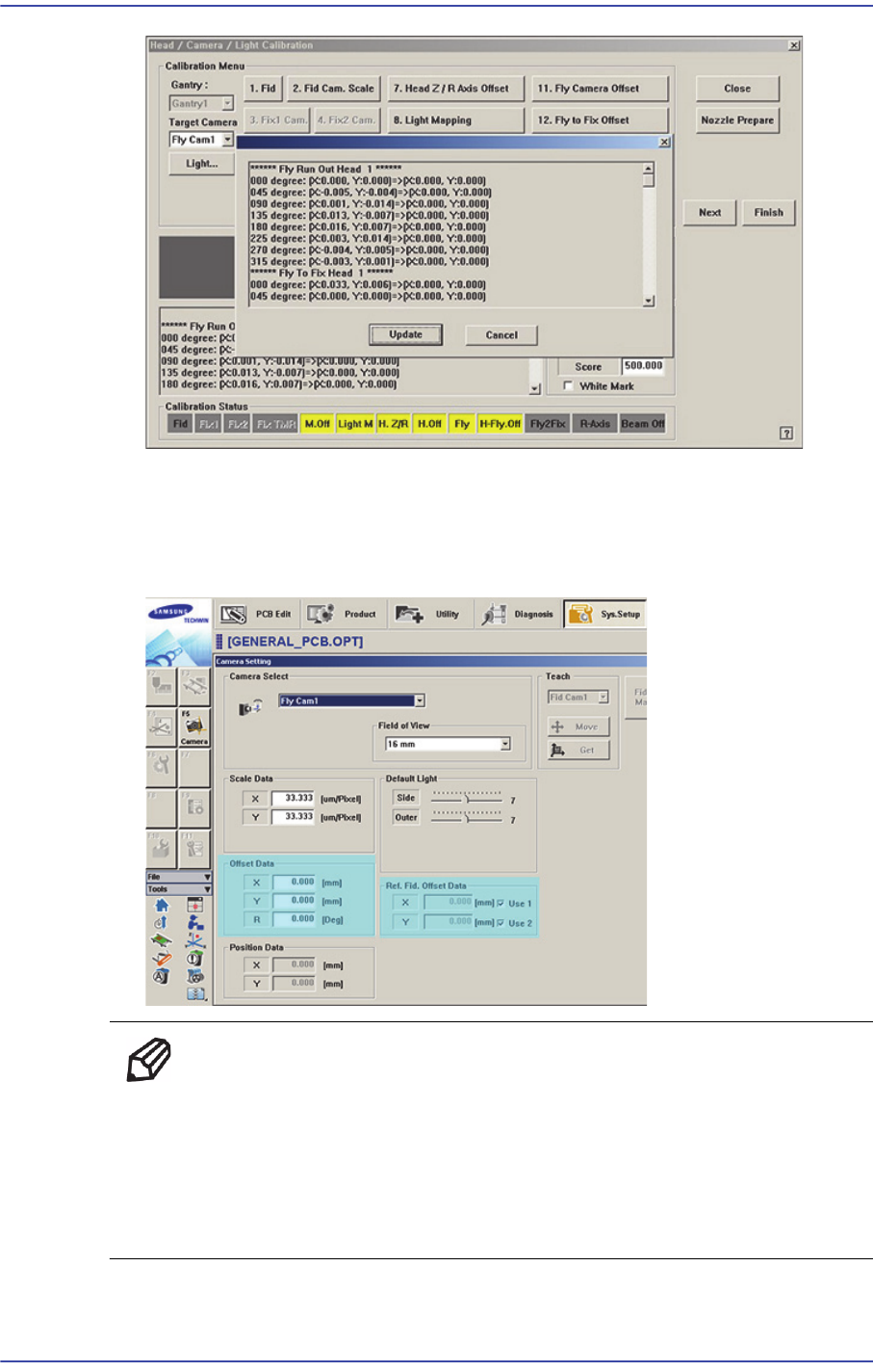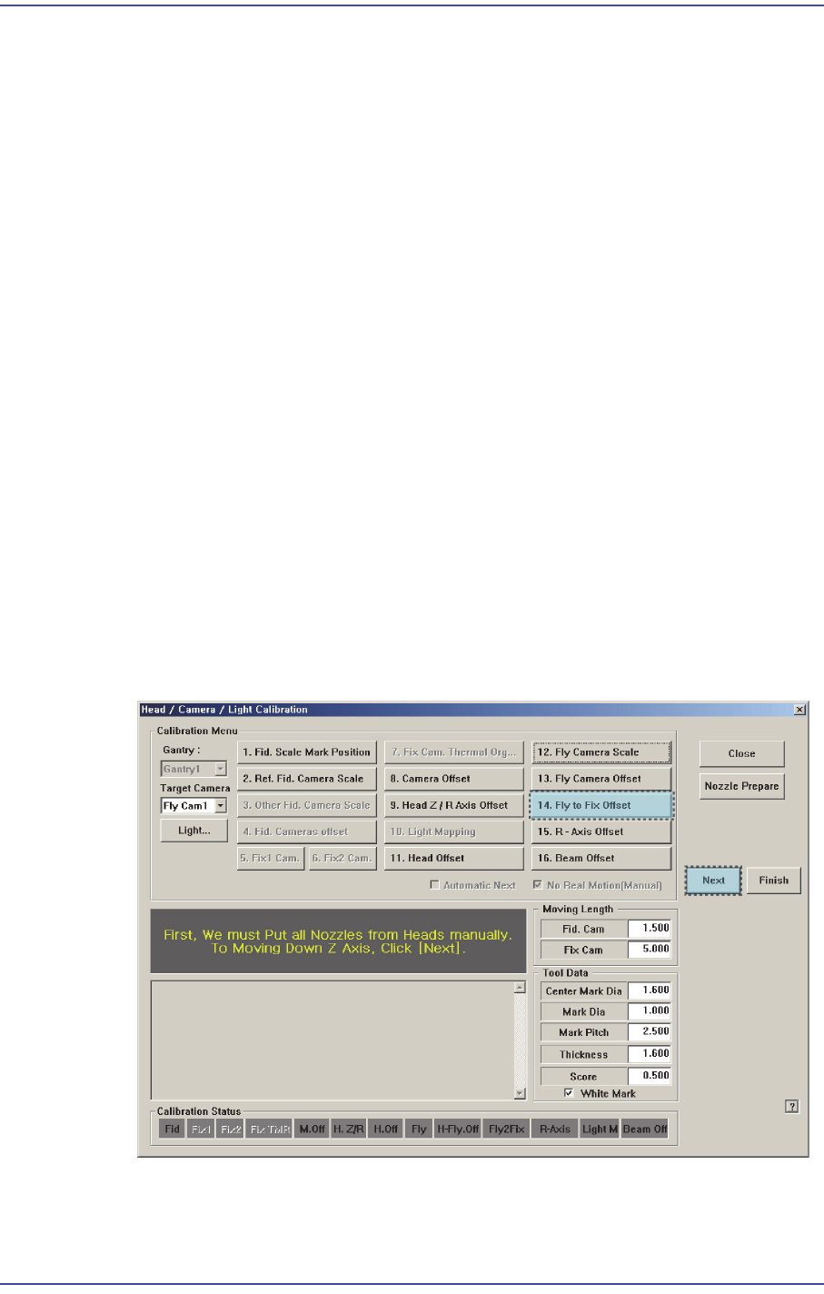 18-73 Machine Calibration 18.3.10.7. Fly to Fix Ca mera & Fly Runout Offset Calibration Calibrates the relation between the Fly cam era and Fix camera. The calibration is performed to compensate the offset that occur…