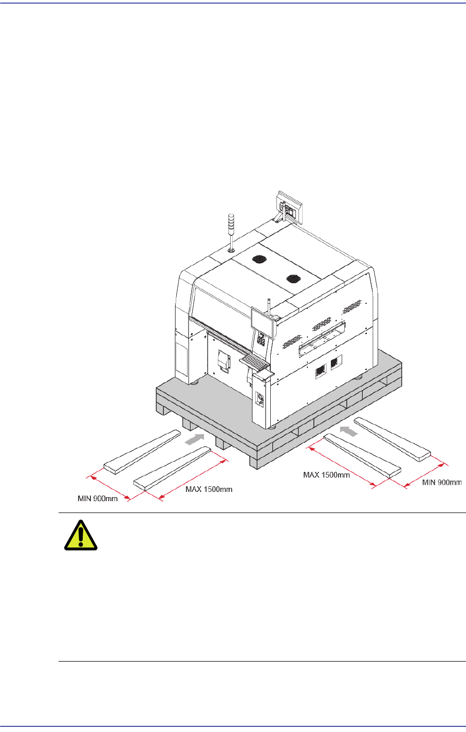 from the pallet, raise the feet of the machine completely and move it using a hand lift.